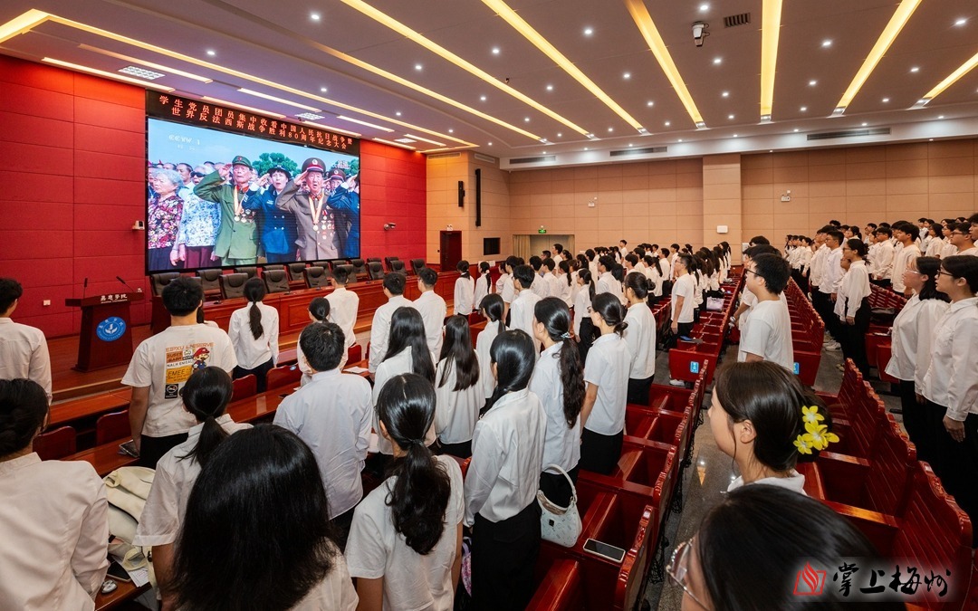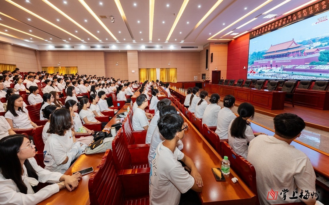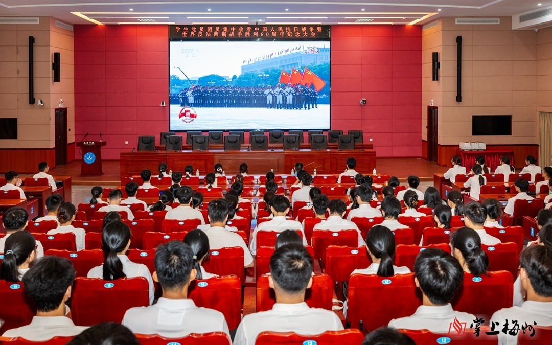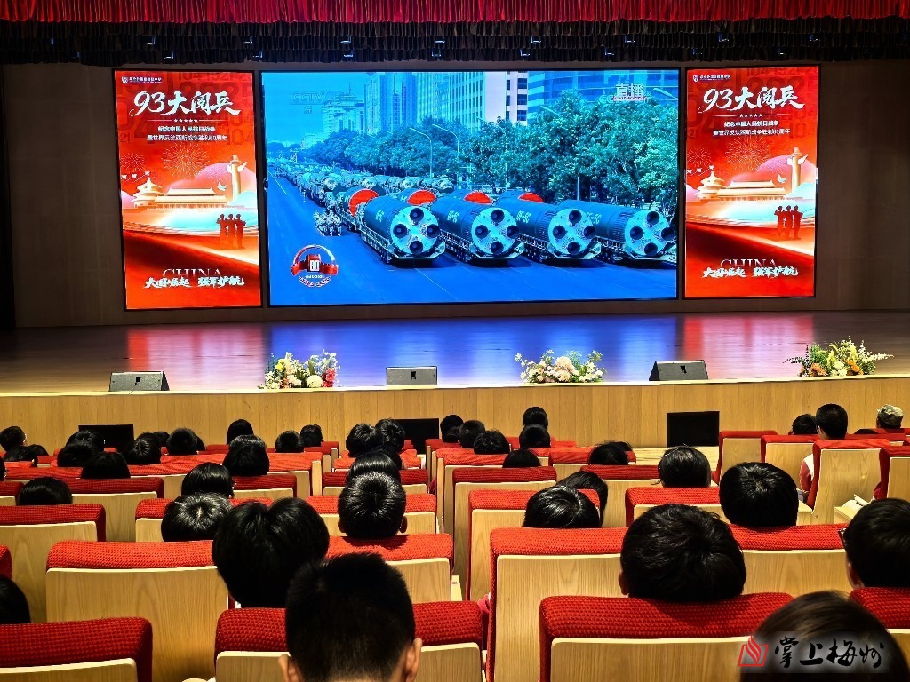 9月3日上午9时许,嘉应学院百年纪念大楼121教室座无虚席,该校百余名学生党员、入党积极分子与团员代表端坐在座位上,目光灼灼地聚焦于教室前方的屏幕,此时央视直播画面正切入九三阅兵现场。