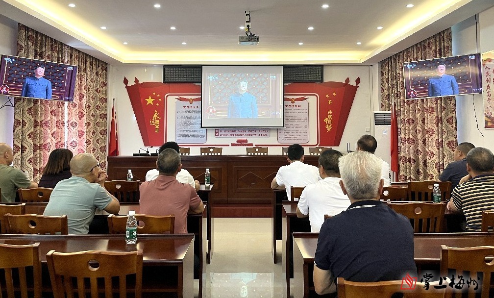 大埔县三河镇旧寨村党员群众集中观看大会直播。(洪国栋 摄)