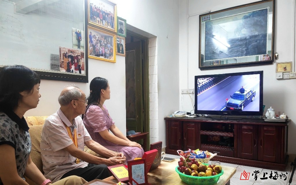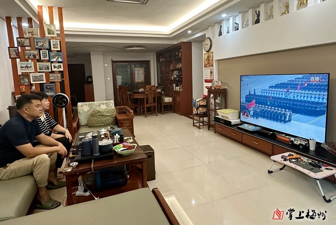 9月3日上午,家住梅城的钟鸣夫妇早早守候在电视机前等待大会直播。