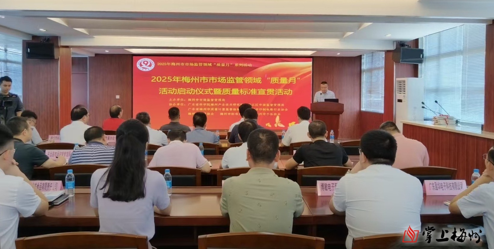 掌上梅州讯 9月4日,2025年梅州市市场监督领域“质量月”活动启动仪式暨质量标准宣贯活动在广东省科学院梅州产业技术研究院举行。梅州市市场监管局相关负责同志,广东省科学院梅州市产业技术研究院负责同志,市、县两级市场监管局相关领导以及相关行业协会和企业代表共60多人参加活动。