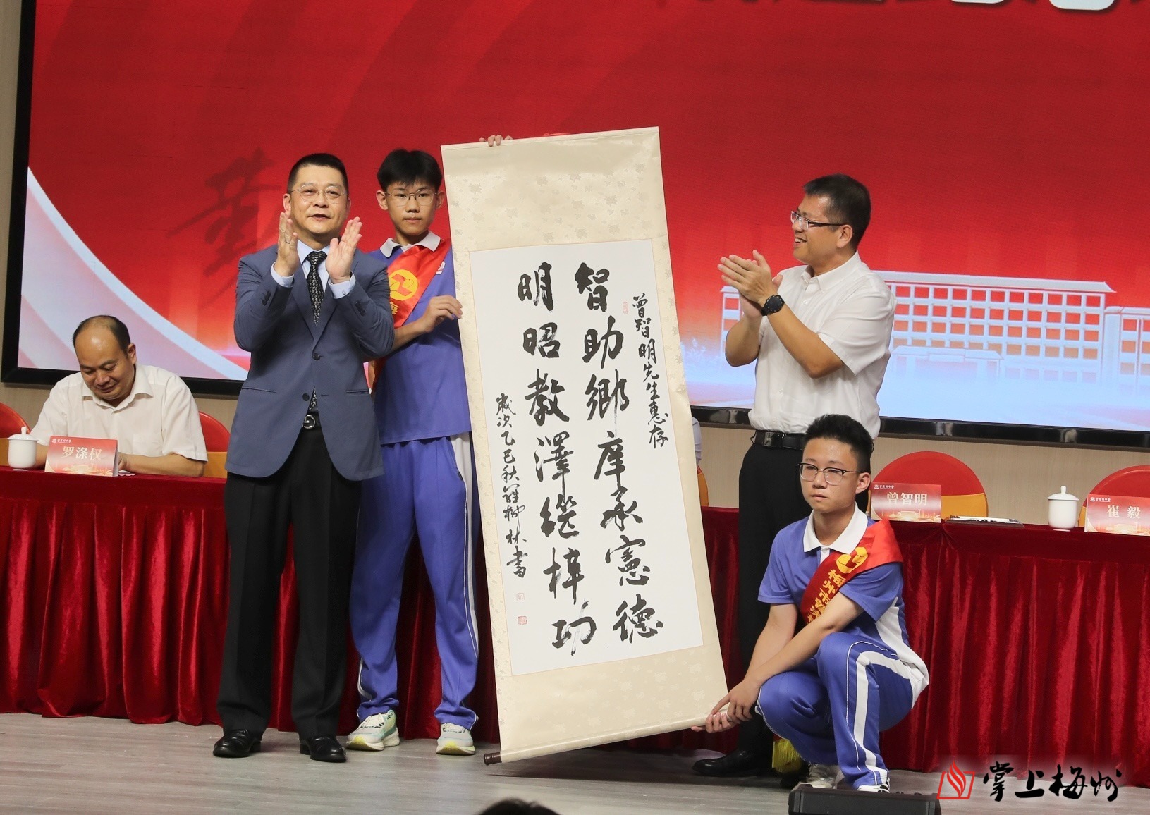 掌上梅州讯 9月4日下午,梅州市曾宪梓中学举行2025 年教师节庆祝大会暨捐赠仪式。全国政协委员、金利来集团主席兼行政总裁曾智明,市委常委、统战部部长崔毅,深圳市鸿富瀚科技有限公司董事长、梅州市曾宪梓中学教育发展基金会理事长张定武校友,市教育局党组书记、局长杨栋,市委统战部常务副部长王忠豪,叶剑英纪念园管理局一级调研员、广东省雁洋公益基金会理事李理和,市教育局党组成员、副局长罗涤权以及该校领导班子、全校教职工和高一级全体学生参加了活动。