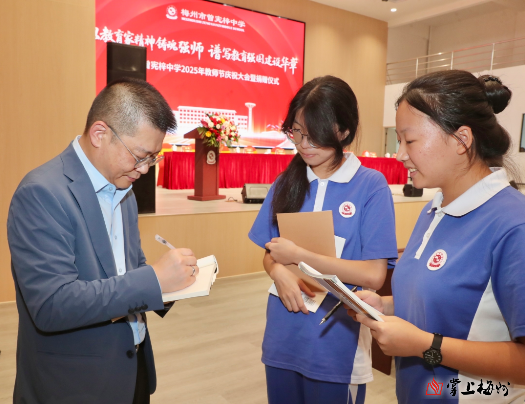 掌上梅州讯 9月4日下午,梅州市曾宪梓中学校园内暖意融融,该校2025年教师节庆祝大会暨捐赠仪式在智雄大礼堂隆重举行。当受邀嘉宾全国政协委员、金利来集团主席兼行政总裁曾智明步入会场时,现场瞬间被热烈的氛围包裹——雷鸣般的掌声响彻会场,学生们挥舞着双手欢呼,眼中闪烁的崇敬与喜悦,是对这位一直情系学校发展的“筑梦人”最真挚的回应。