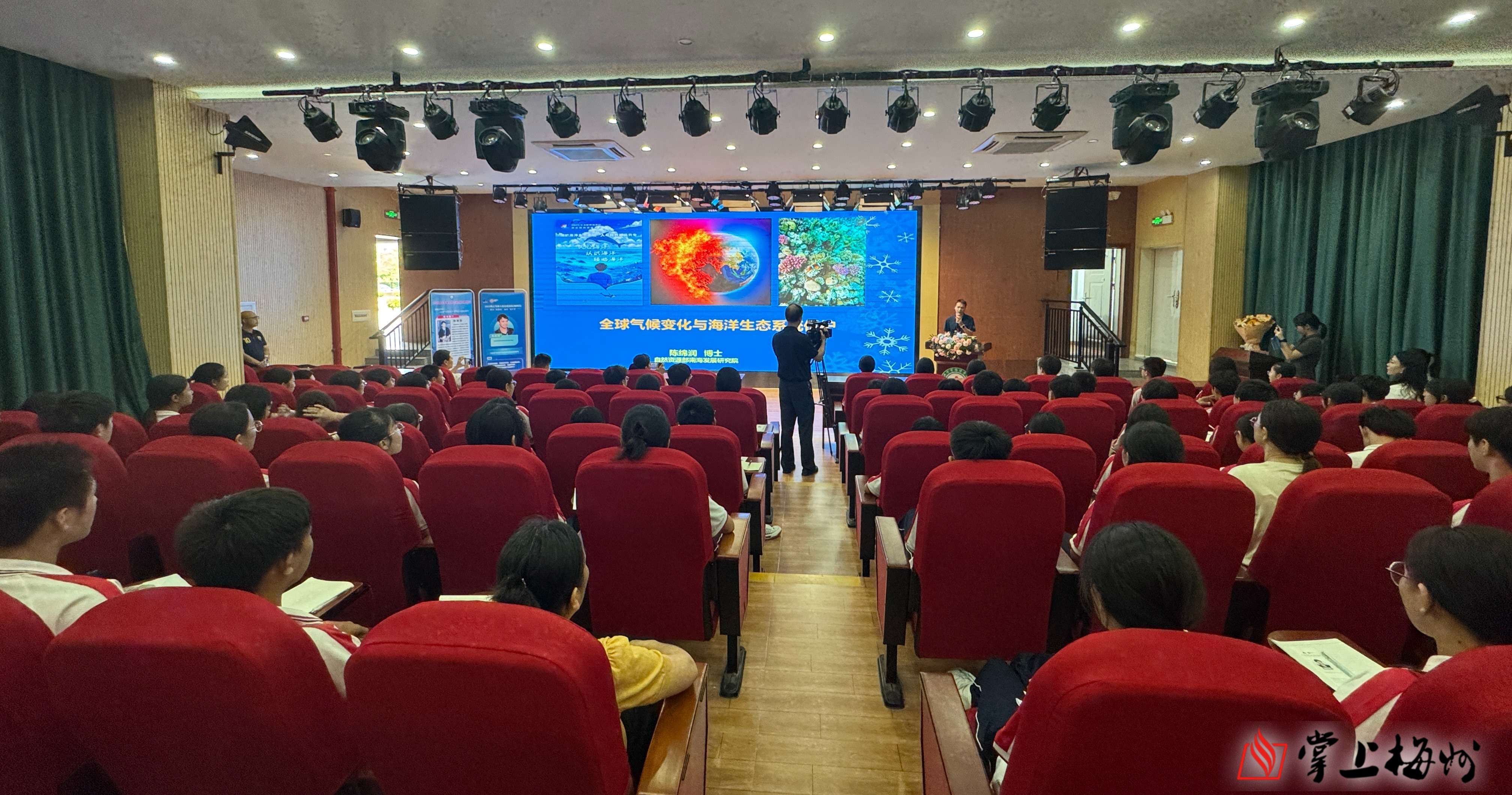 在兴宁市锦绣学校演播厅,自然资源部南海发展研究院正高级工程师陈绵润以《全球气候变化与海洋生态系统保护》为题开课,用一句“小时候想当科学家也想四处探索,如今两个梦想都实现了”拉近与孩子的距离。近一小时的课程里,孩子们认真记录、踊跃提问。课程最后,陈绵润留下寄语:“科技照亮前路,学科指引方向,行动成就未来。让我们以科技为舟,以知识为帆,在海洋保护的征程中破浪前行!”