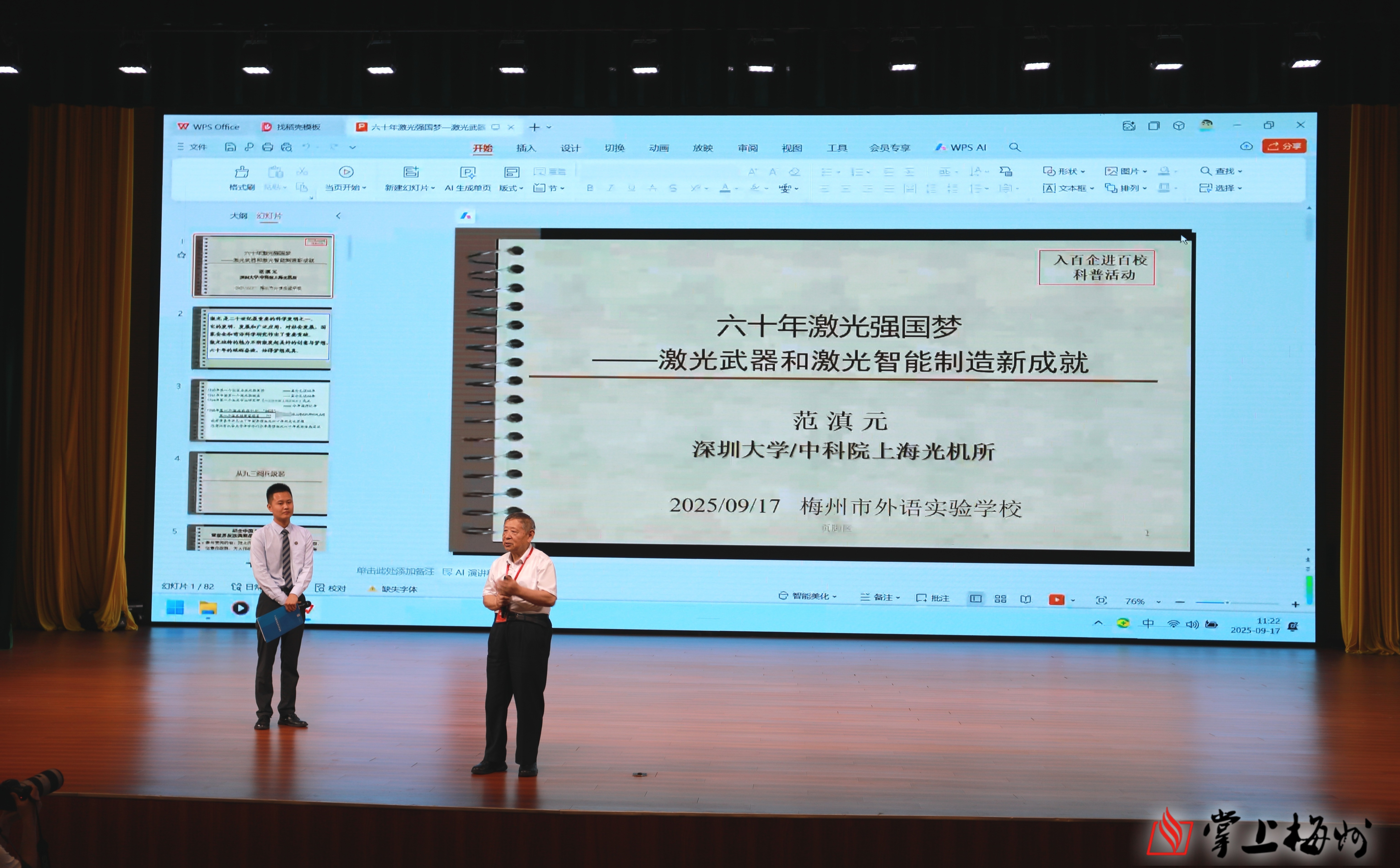 不同学段的学子,均能从院士讲座中收获专属启发。在梅州市外语实验学校,中国工程院院士范滇元带来激光科普讲座。作为激光与光电子学专家,他用图文并茂的方式,从九三阅兵中的激光武器讲到激光的起源与应用,还分享了自己的科研历程。601班学生李恬听完深受触动:“原来科技离我们这么近!这让我知道科技强国很重要,不能只围着课本学,要全面发展。”