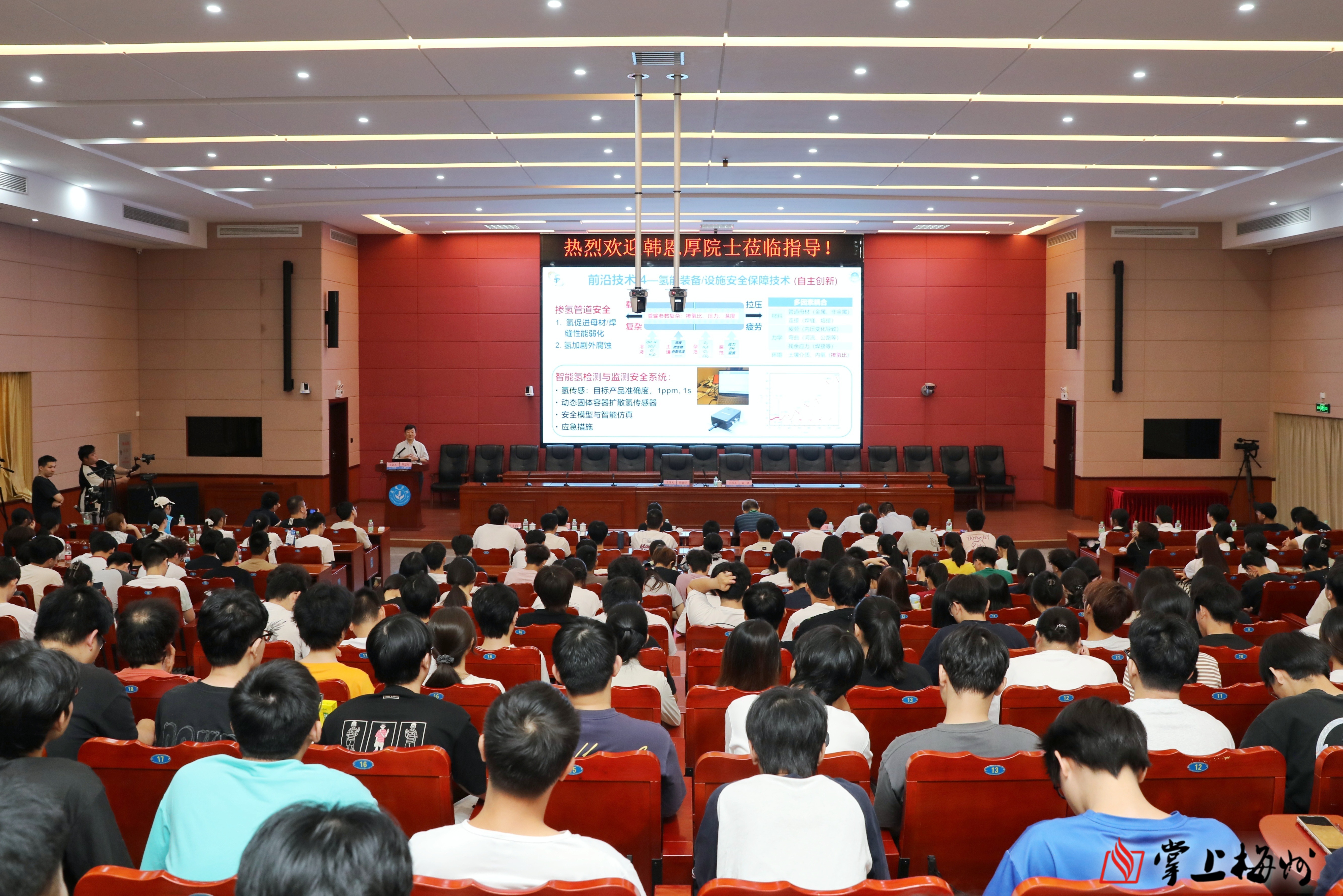 在嘉应学院学术报告厅,中国工程院院士韩恩厚以《腐蚀控制:工程装备的关键技术》为题开课。(林翔 摄)
