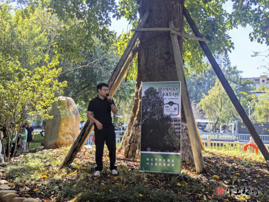 嘉应学院陈庚博士结合现场古树(秋枫),开展保护知识宣讲,生动解析古树分级标准、复壮技术及《条例》核心内容,现场观众互动踊跃。