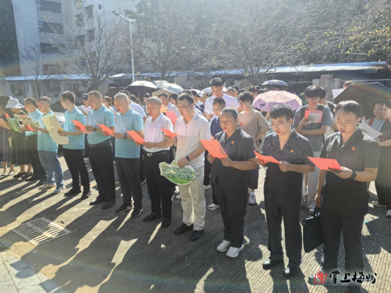 掌上梅州讯 9月28日,由梅州市绿美办、梅州市中级人民法院、梅州市林业局主办,梅江区人民法院、梅江区林业局、广东省清凉山自然保护区管理所承办,嘉应学院协办的“保护古树名木 传承生态文明”科普宣传活动在嘉应学院南区秋枫古树下隆重举行。活动旨在增强公众对古树名木生态价值与文化意义的认知,宣传《古树名木保护条例》,普及保护知识与法律意识,推动全社会形成古树保护合力。