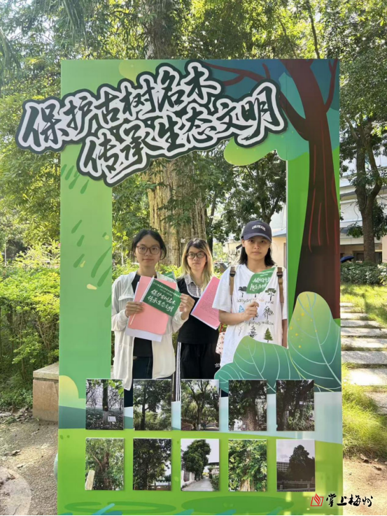 本次活动创新形式,设置“古树寻踪打卡”环节。参与者领取任务卡后,徒步寻找校园内中区尾叶紫薇、东区秋枫两棵古树,通过合影打卡、知识问答、有奖竞猜等趣味活动,深化对古树保护的理解。现场还发放《保护条例》宣传页、环保袋等物料,普及法律知识。