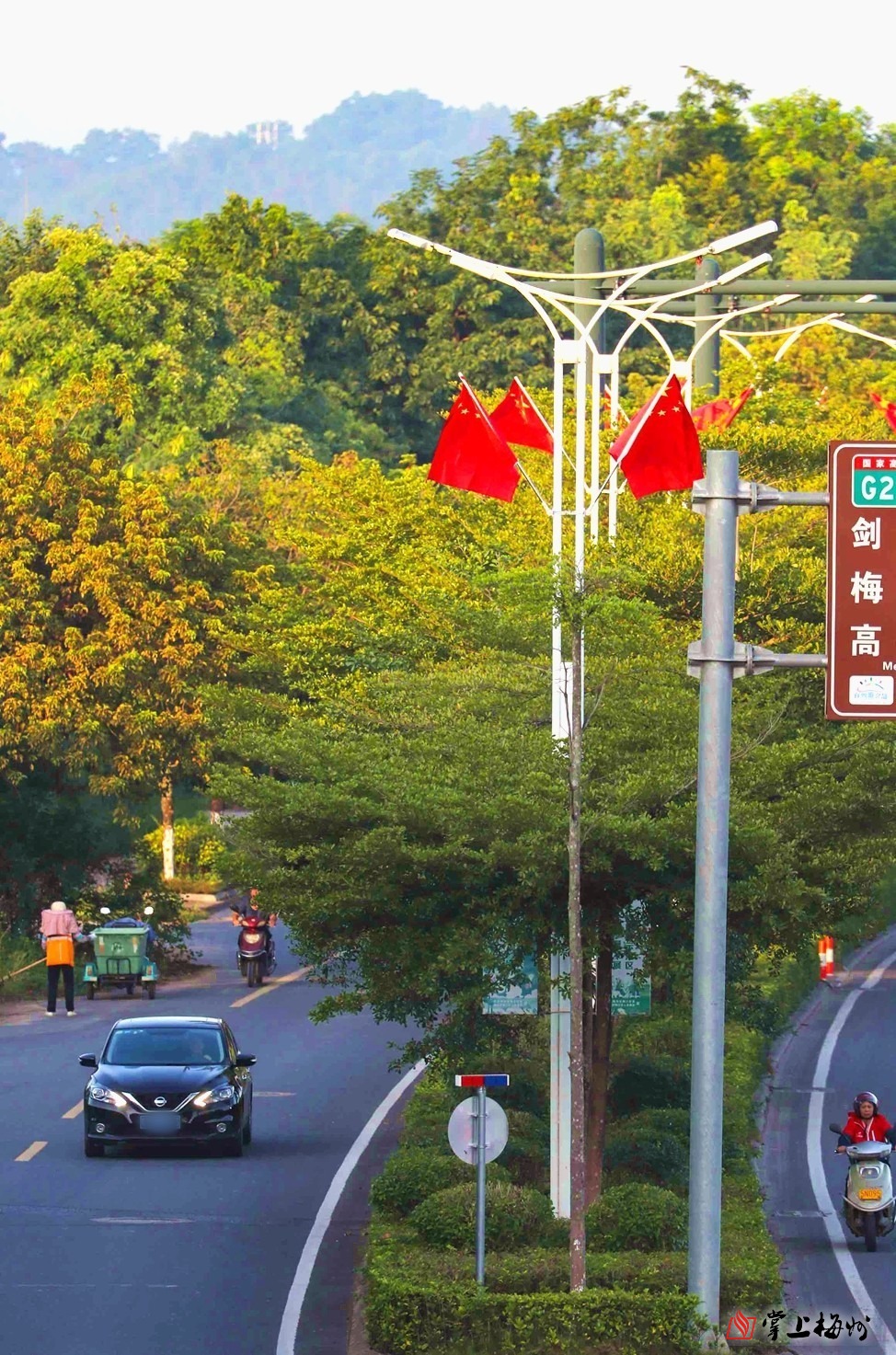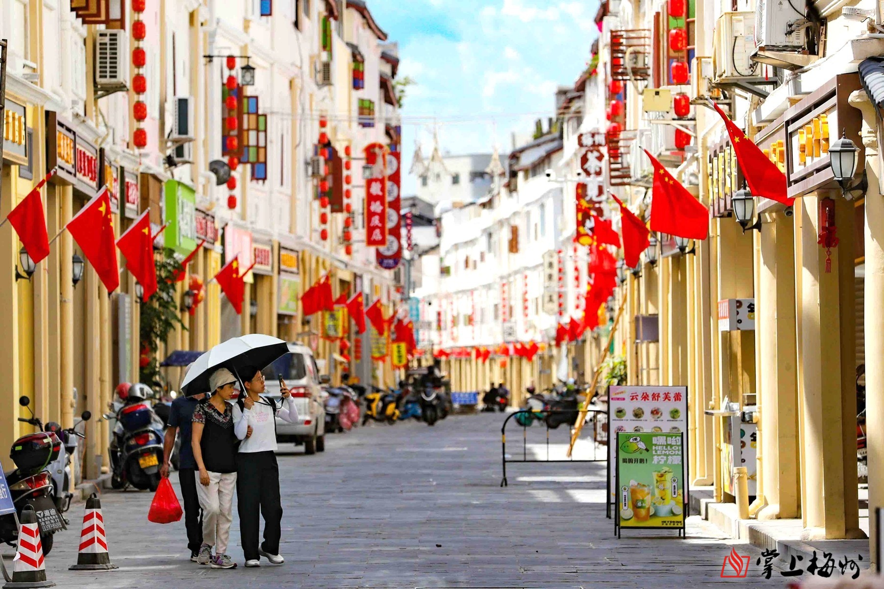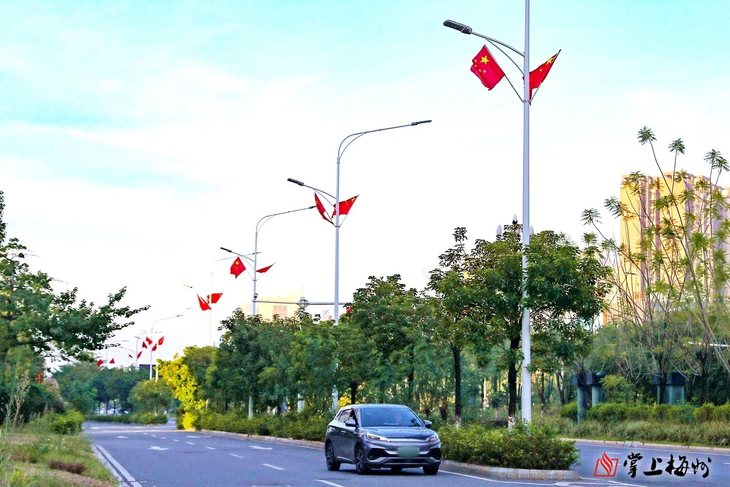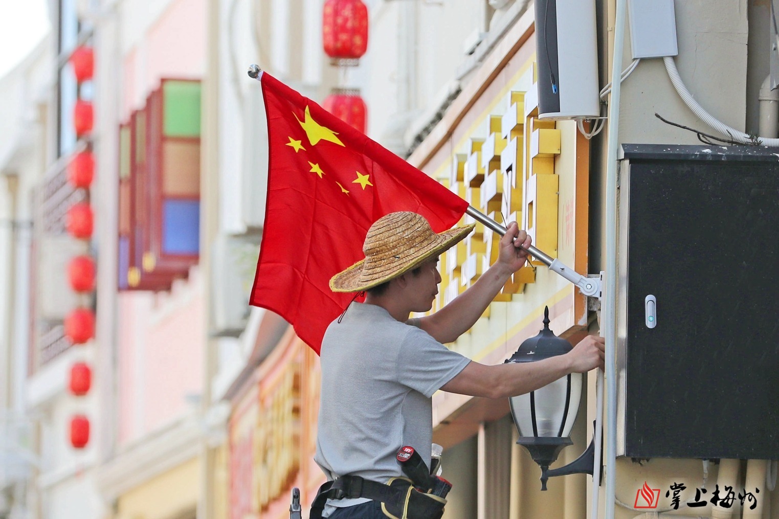 掌上梅州讯 随着国庆、中秋“双节”的脚步日益临近,梅州城区节日氛围持续升温,“中国红”成为了这座城市最亮眼的底色。