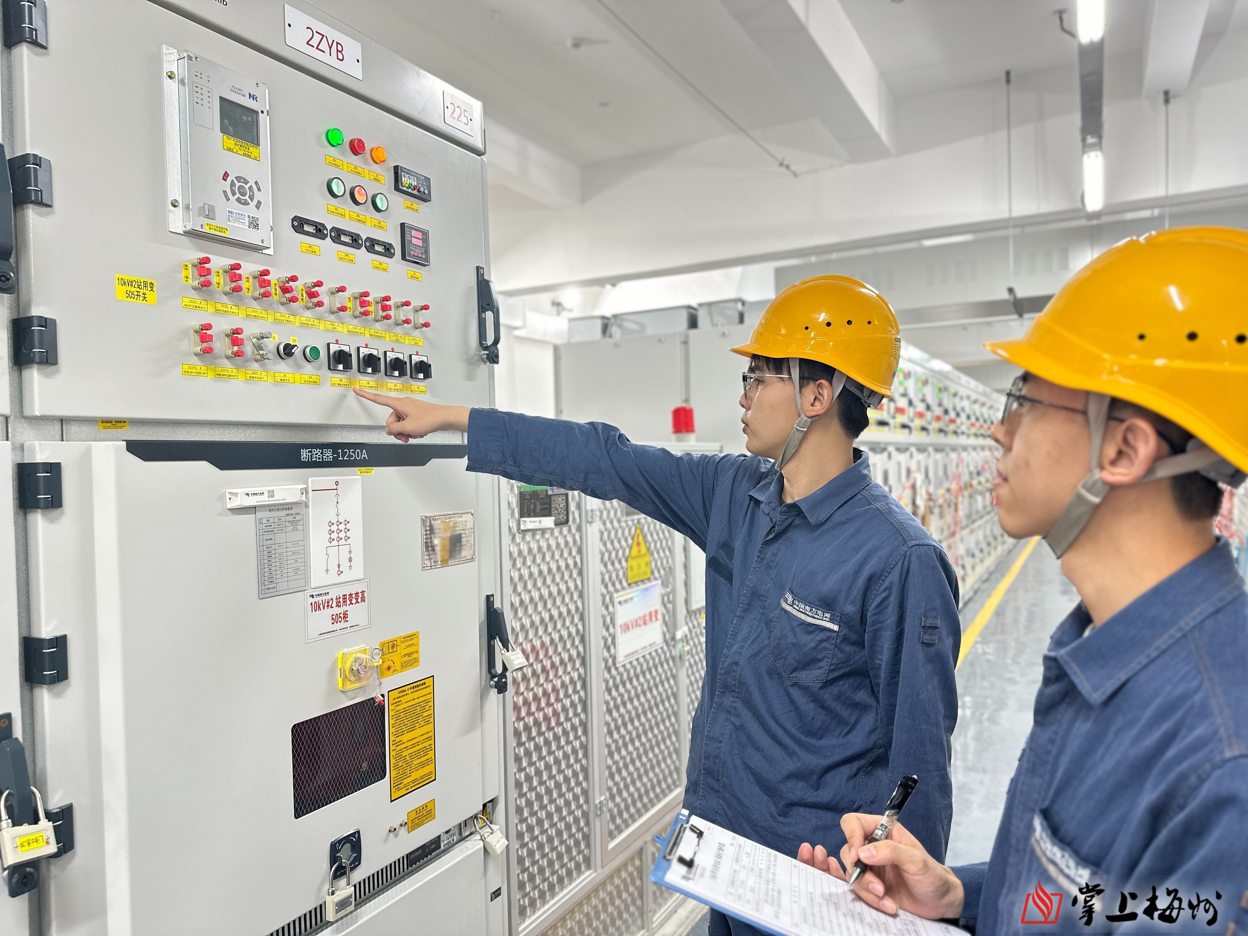 南方电网广东梅州供电局变电管理二所运行人员在110千伏罗乐站进行启动操作。(张育明 摄)