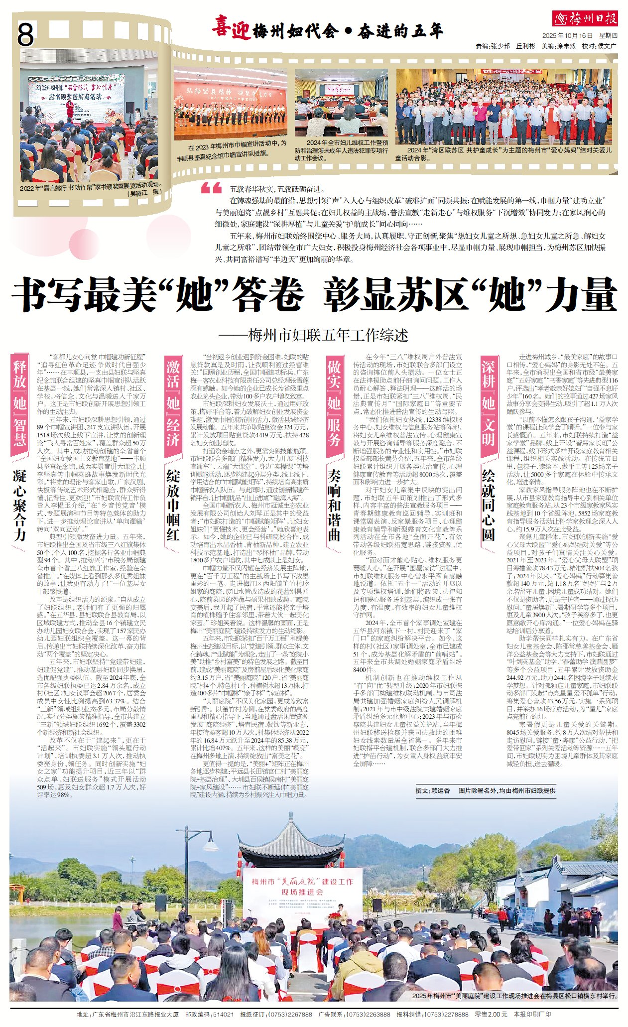 五年来,梅州市妇联始终围绕中心、服务大局,认真履职、守正创新,聚焦“想妇女儿童之所想、急妇女儿童之所急、解妇女儿童之所难”,团结带领全市广大妇女,积极投身梅州经济社会各项事业中,尽显巾帼力量、展现巾帼担当,为梅州苏区加快振兴、共同富裕谱写“半边天”更加绚丽的华章。