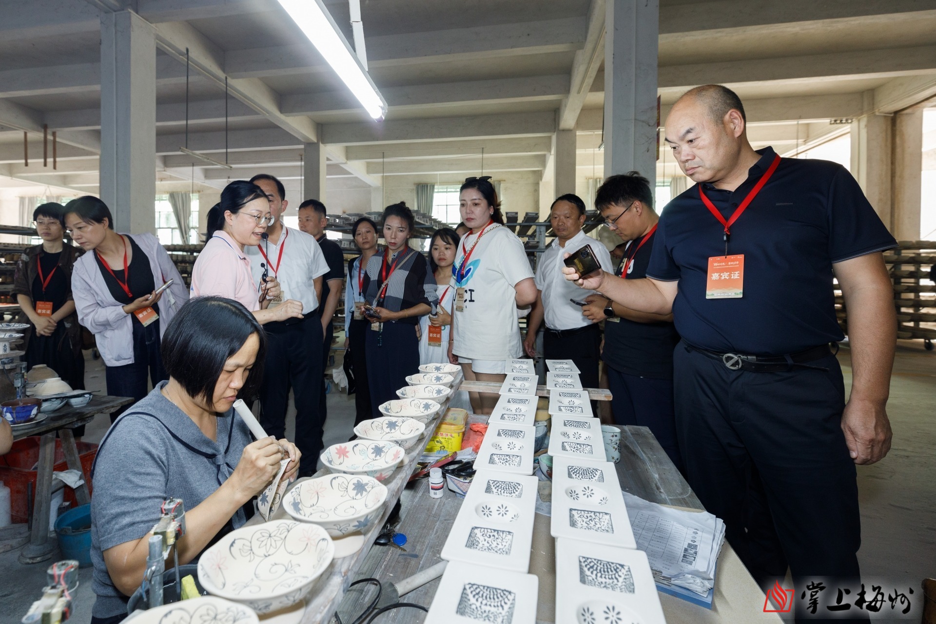 与会嘉宾实地观摩大埔光德陶瓷烧制技艺非遗工坊。林翔摄