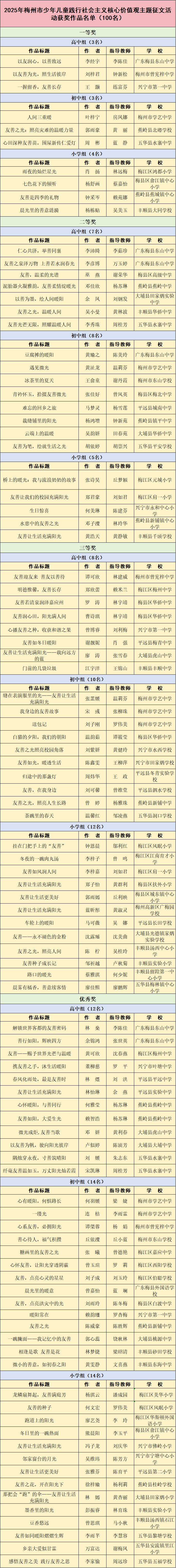 附件:2025年梅州市少年儿童践行社会主义核心价值观主题征文活动获奖名单