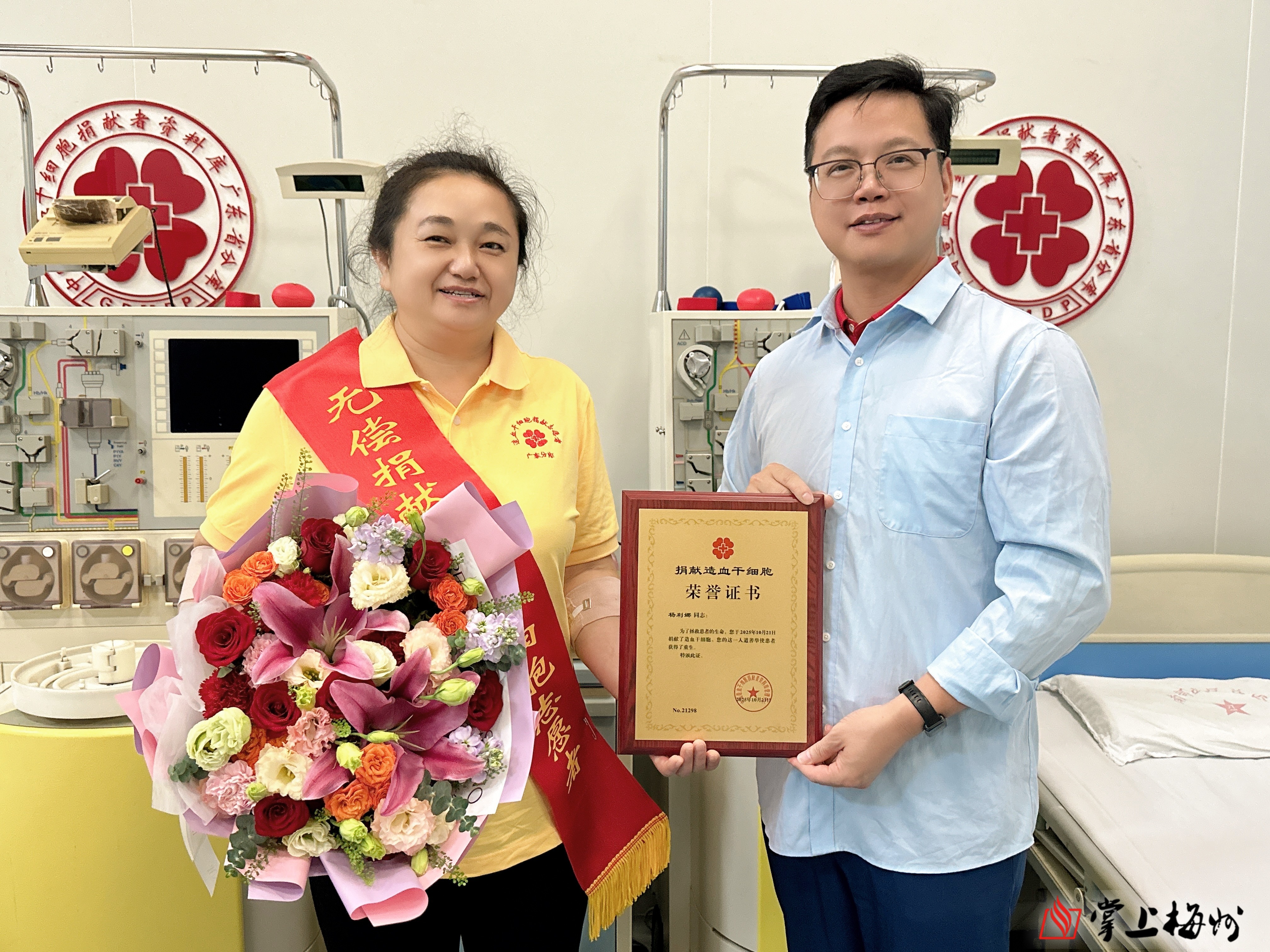 掌上梅州讯 10月21日上午,在市红十字会工作人员的协调和陪同下,梅江区志愿者杨利娜在中国人民解放军南部战区总医院成功捐献造血干细胞,成为中国造血干细胞捐献者资料库广东省管理中心梅州工作站第48例捐献者。