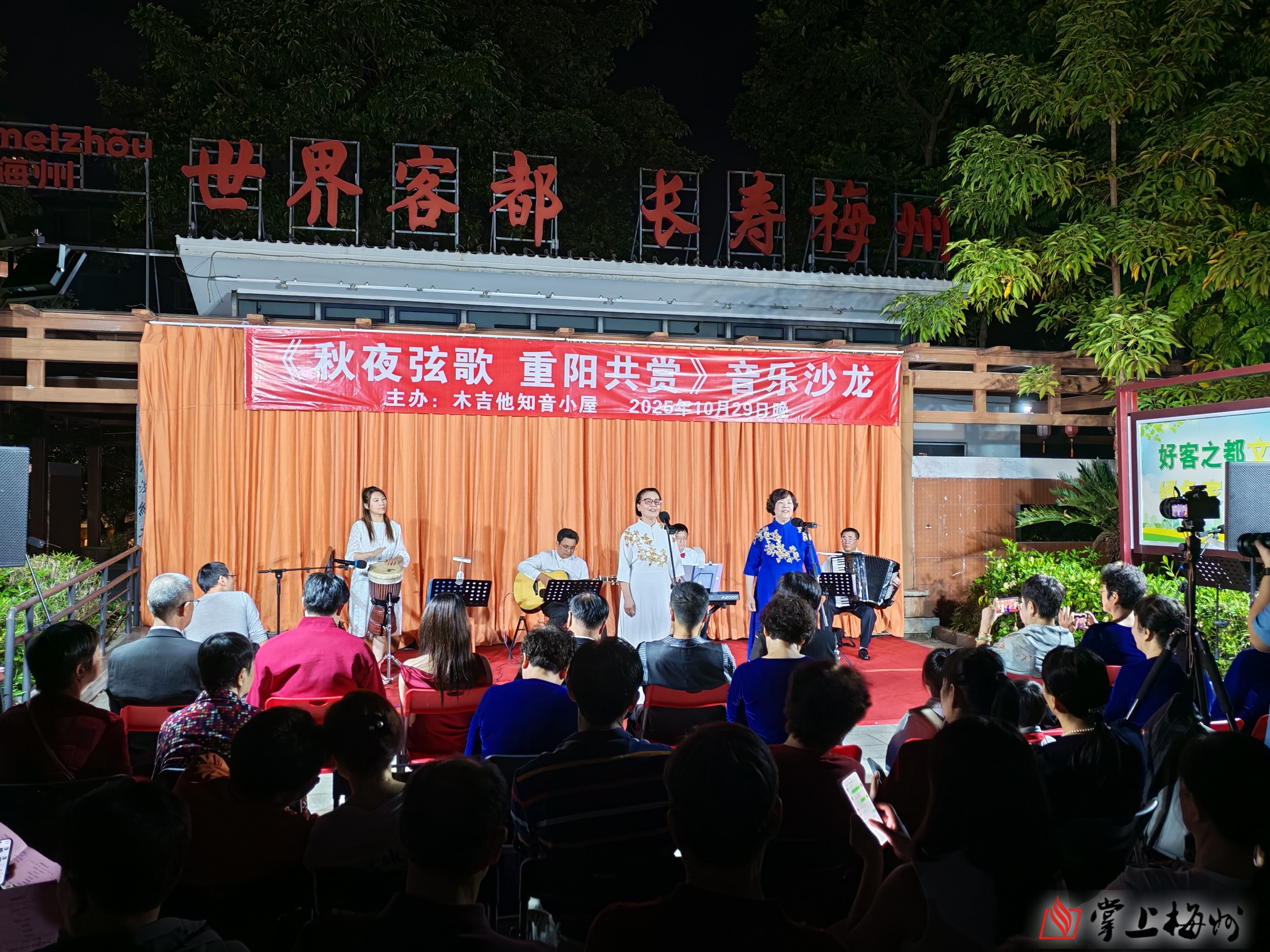 10月29日晚,木吉他知音小屋在梅城归读公园举办“秋夜弦歌 重阳共赏”音乐沙龙,老少音乐爱好者围坐一堂,在悠悠弦音中聆听旋律背后的动人故事,共度充满诗意与温情的重阳之夜。