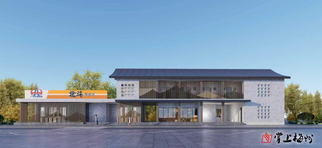 北斗服务区为新建服务区,位于梅州市丰顺县北斗镇,地处粤东交通要道和丰顺县重要出入口。服务区计划工期为12个月,总建筑面积1813.71平方米,场区路面面积24450.84平方米,主要建设内容包括场区道路、广场、停车场及综合服务楼、水电房、垃圾房等附属设施。