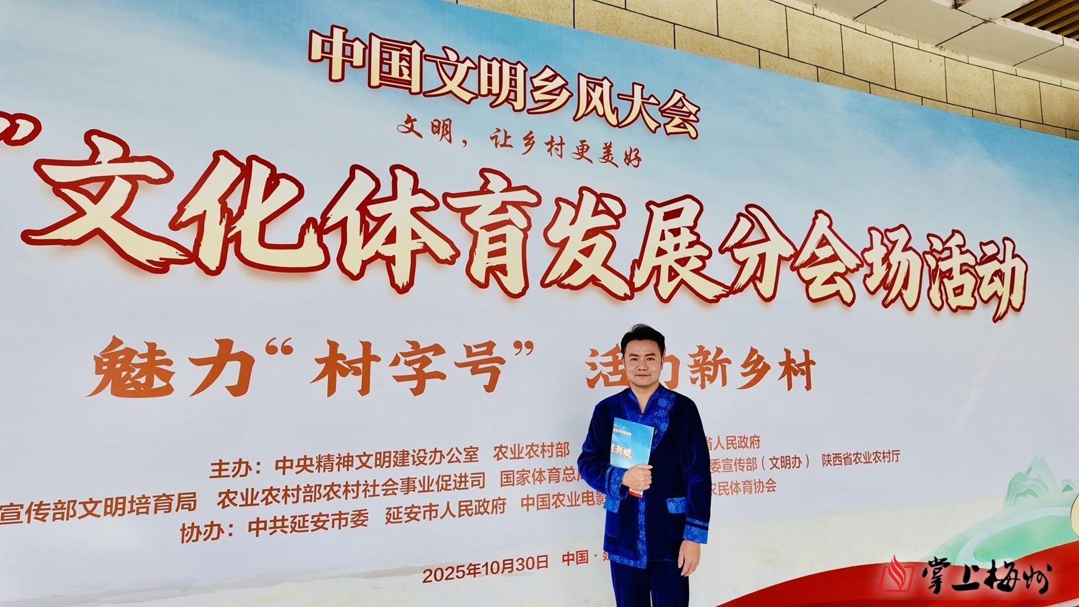 掌上梅州讯 10月30日,在陕西延安举行的首届中国文明乡风大会上,客家音乐人陈善宝作为广东省代表登台献艺,向全国观众展现岭南乡村文化的独特魅力。这位正高级音乐工程师、杰出客家文化使者用精彩的演出,有力展示了广东乡风文明的建设成果。