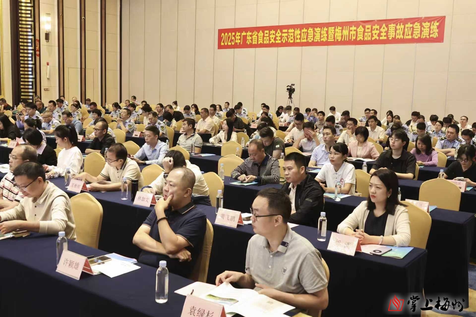 演练活动还特别邀请了东莞、汕头、韶关、河源、惠州、汕尾、清远、潮州、揭阳等9个地市市场监督管理局有关领导及相关负责同志现场观摩。梅州市食药安委成员单位负责同志,各县(市、区)政府分管负责同志及食药安办主要负责人、有关人员共200多人出席演练。