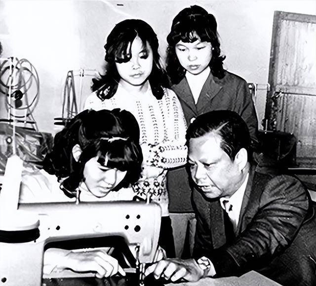 20世纪80年代,在梅州银利来领带厂,曾宪梓教员工制作领带。(金利来集团有限公司供图)