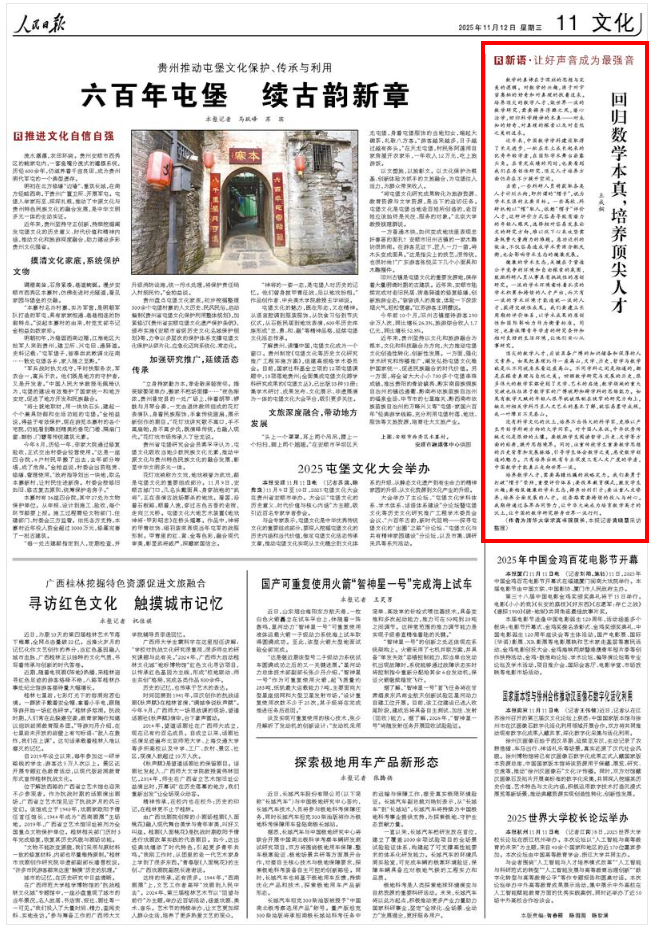 11月12日《人民日报》第11版刊登了丘成桐撰写的文章,全文如下: