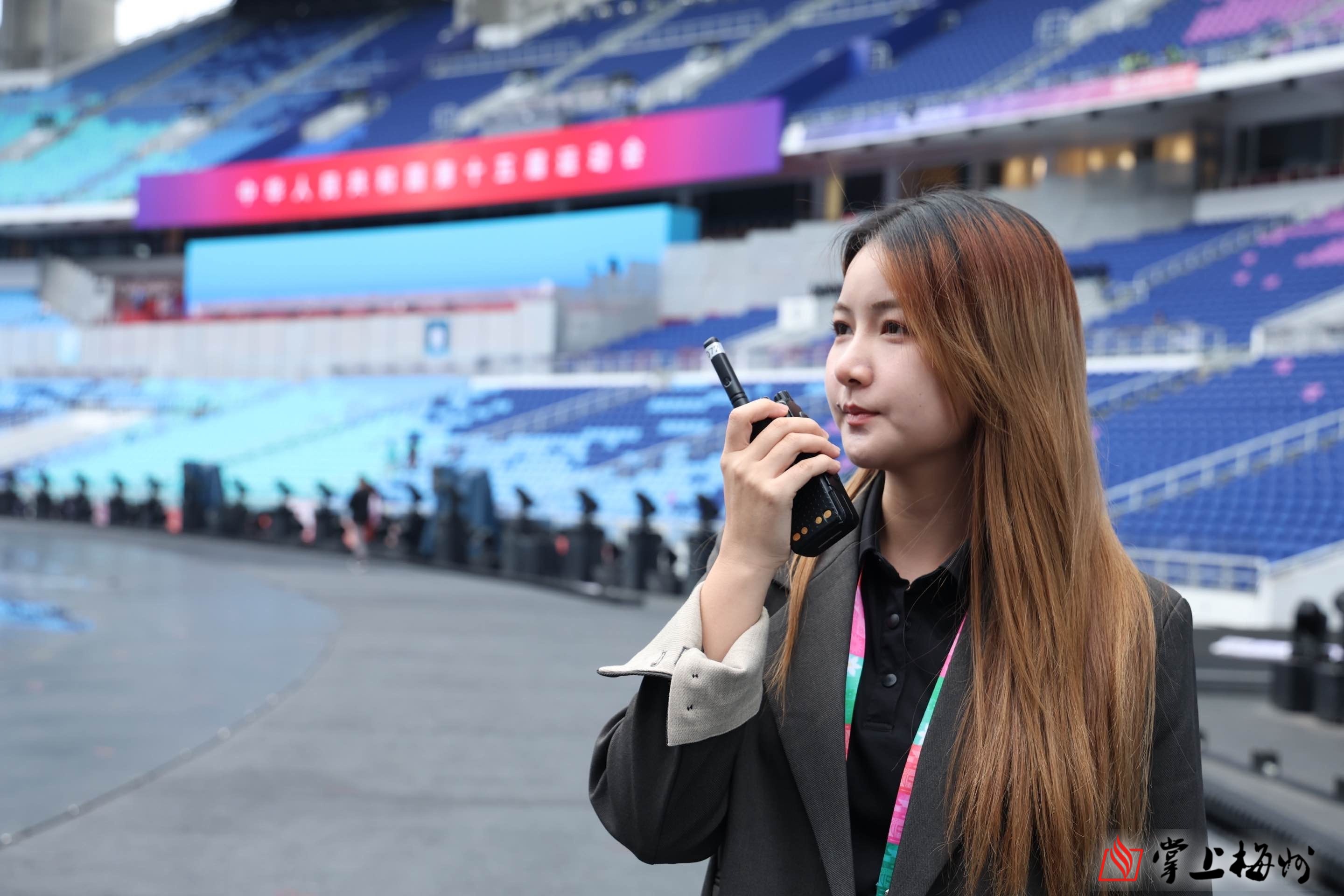 “压力很大,但动力更大。”谈起全运会开幕式的筹备过程,陈佳琪直言“很难”。今年26岁的她是土生土长的梅州人,在梅州完成了从小学到高中的学业,随后于星海音乐学院深造,打下了坚实的专业基础之后又远赴英国南安普敦大学攻读硕士。目前,陈佳琪就职于广州市锐丰文化传播有限公司,在此次十五运开幕式导演团队中担任暖场表演统筹兼导演。作为团队里的“后生妹”,将家乡的文化瑰宝推向国家级舞台,对她而言既是荣耀,也是一份沉甸甸的责任,“我想证明,我们梅州年轻人,心里有火,眼里有光,更有担当。”