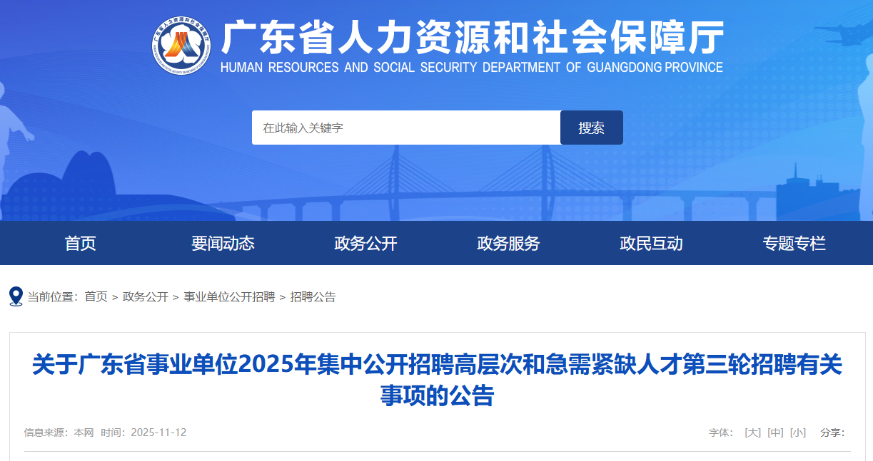 考试、体检、考察、公示、聘用等其他事项,均按《广东省事业单位2025年集中公开招聘高层次和急需紧缺人才公告》执行。原公告《报考指南》中涉及“报名首日”的表述,均以第三轮招聘报名开始时间另行计算。