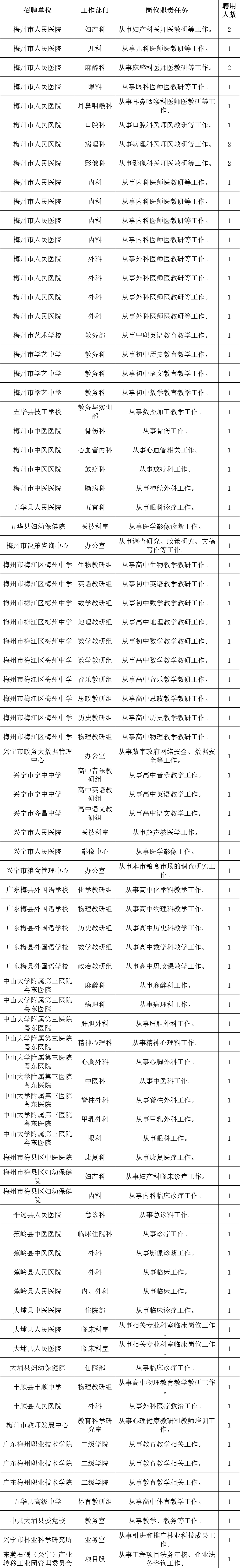 附:梅州考区岗位表
