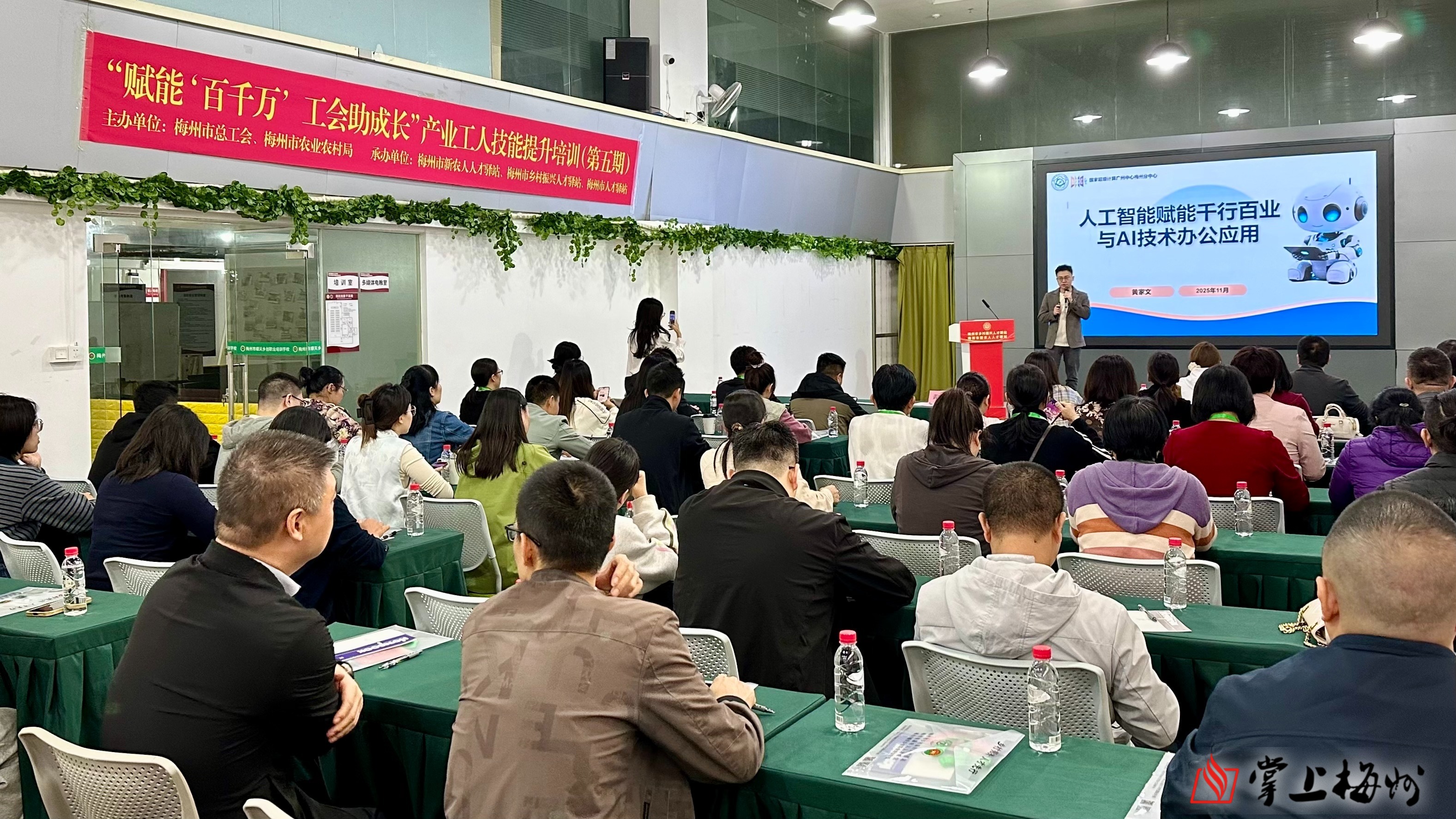 此次培训由梅州市总工会与梅州市农业农村局联合主办,特邀中山大学信息学与人工智能教育研究中心项目总监、国家超级计算广州中心——梅州分中心课程顾问黄家文担任主讲。凭借在企业数智化转型、AI人才培育及信息学教育领域的丰富经验,黄家文采用“理论解析+案例拆解+场景模拟”的授课方式,系统讲解了人工智能的发展趋势、行业场景应用及实战技能。培训内容涵盖信息检索方法、提示词设计技巧,以及如何借助AI生成各类文章、图片、视频等内容,多维度引导学员掌握AI工具在办公场景、内容创作、数据助力学员将智能工具转化为提升工作效率、拓展发展路径的“新利器”。为强化培训效果,课程还设置了实操环节。学员们通过上机操作,亲身体验从精准指令输入到高质量成果输出的完整流程,深入理解AI工具的功能认知与操作要领。