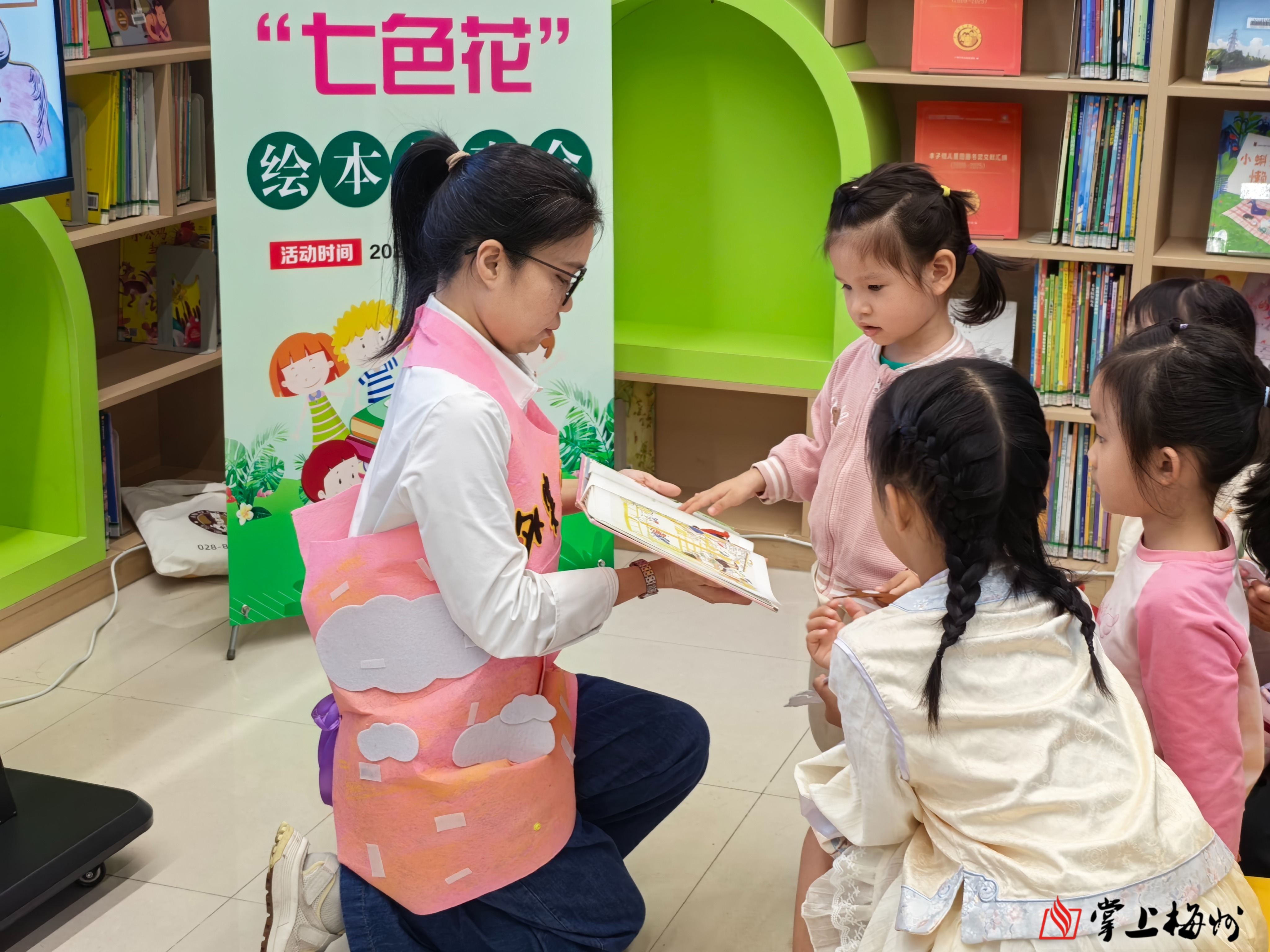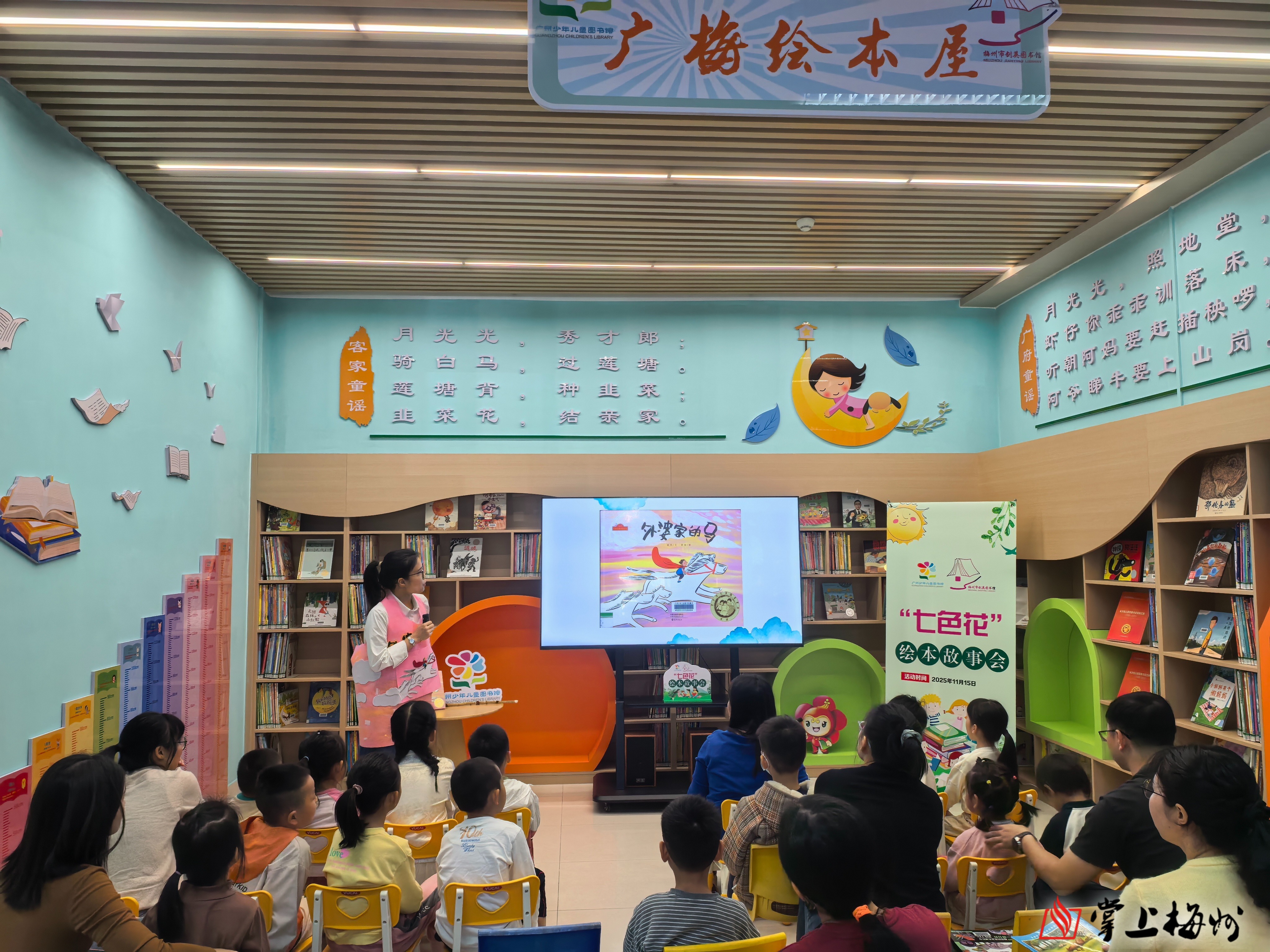 广梅两馆共建绘本屋启用首秀,绘本故事会在此开讲。