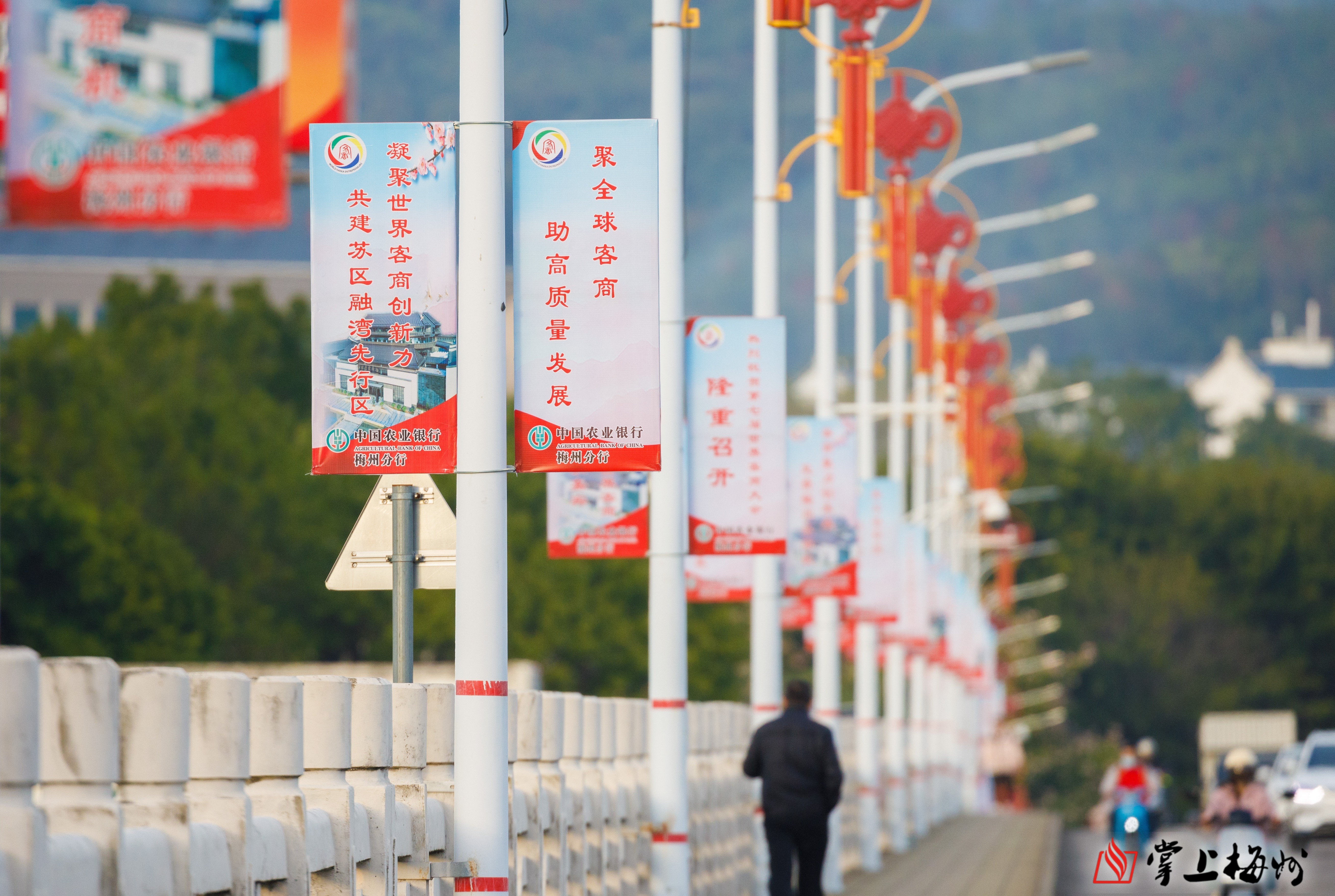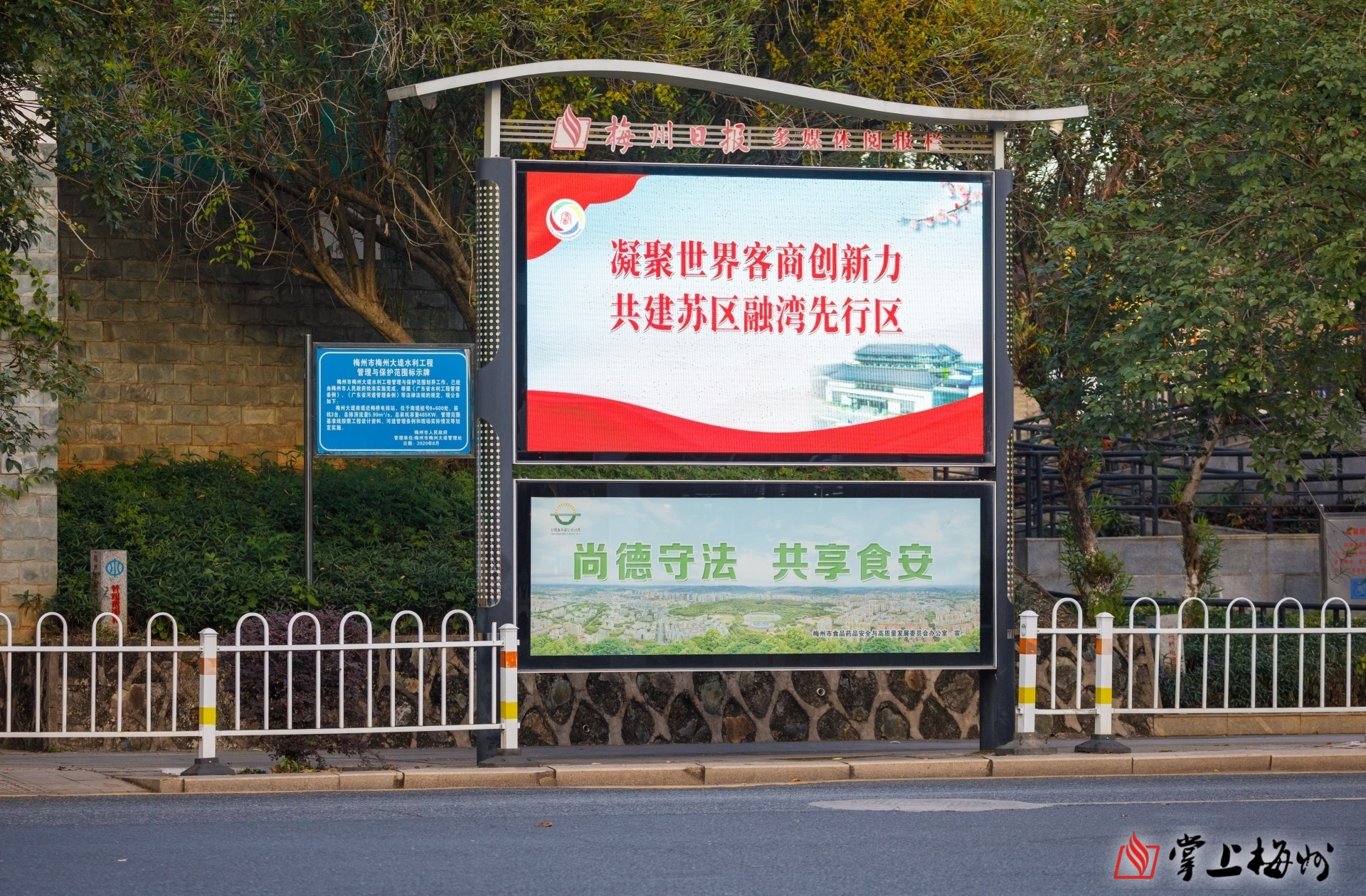 为让参会嘉宾更好感受“百千万工程”工作成效和客都梅州的活力魅力,梅州以“干净整洁、规范有序、美丽温馨”为核心目标,同步推进城市氛围营造与环境品质提升,让城乡风貌焕发新颜。记者走访梅州城区,处处能感受到迎接大会的热烈气息。客都大道、广州大桥、梅州机场、梅水路、梅县区文体中心、梅县人民广场、世界客商中心等重点区域的城区阅报栏、户外led显示屏、户外T牌、灯箱、公交车站等宣传载体同步更新,“凝聚世界客商创新力 共建苏区融湾先行区”“热烈祝贺第七届世界客商大会隆重召开”“汇聚世界客商 谋求合作共赢”“热烈欢迎出席第七届世界客商大会的各位领导和嘉宾”“客商聚力创未来 免费梅州享商机”“聚全球客商助高质量发展”等主题鲜明标语随处可见。万达、客都汇、天虹、东汇城等各大商超的LED屏也播放大会相关内容,让喜迎盛会的热情与期盼渗透城市每个角落。