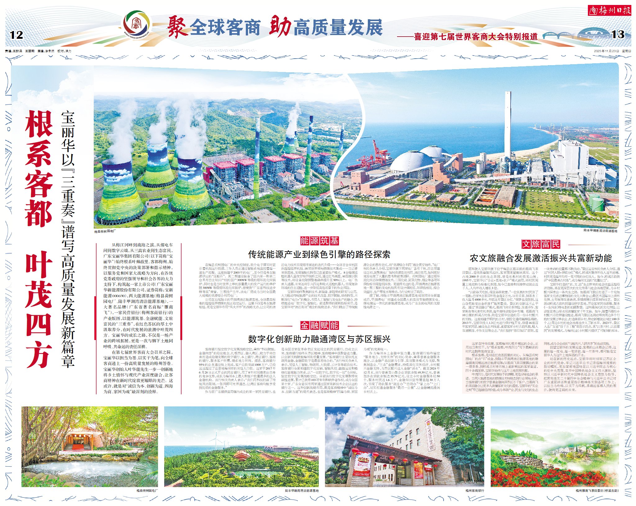 从梅江河畔到南海之滨,从煤电车间到数字云端,从三高农业到生态富民,广东宝丽华集团有限公司(以下简称“宝丽华”)始终根系叶帅故里、客都梅州,始终贯彻党中央的决策部署和指示精神,以服务党和国家大战略为方向,在各级党委政府的坚强领导和社会各界的大力支持下,构筑起一家上市公司(广东宝丽华新能源股份有限公司,证券简称:宝新能源000690),两大能源基地(梅县荷树园电厂、陆丰甲湖湾清洁能源基地),一大著名品牌(广东省著名商标“雁南飞”),一家民营银行(梅州客商银行)的产业版图,以能源筑基、金融赋能、文旅富民的“三重奏”,在红色苏区的厚土中汲取养分,在时代发展的浪潮中叶茂四方。宝丽华的成长之路,不仅是一场产业的跨域拓展,更是一次与脚下土地同呼吸、共命运的责任深耕。