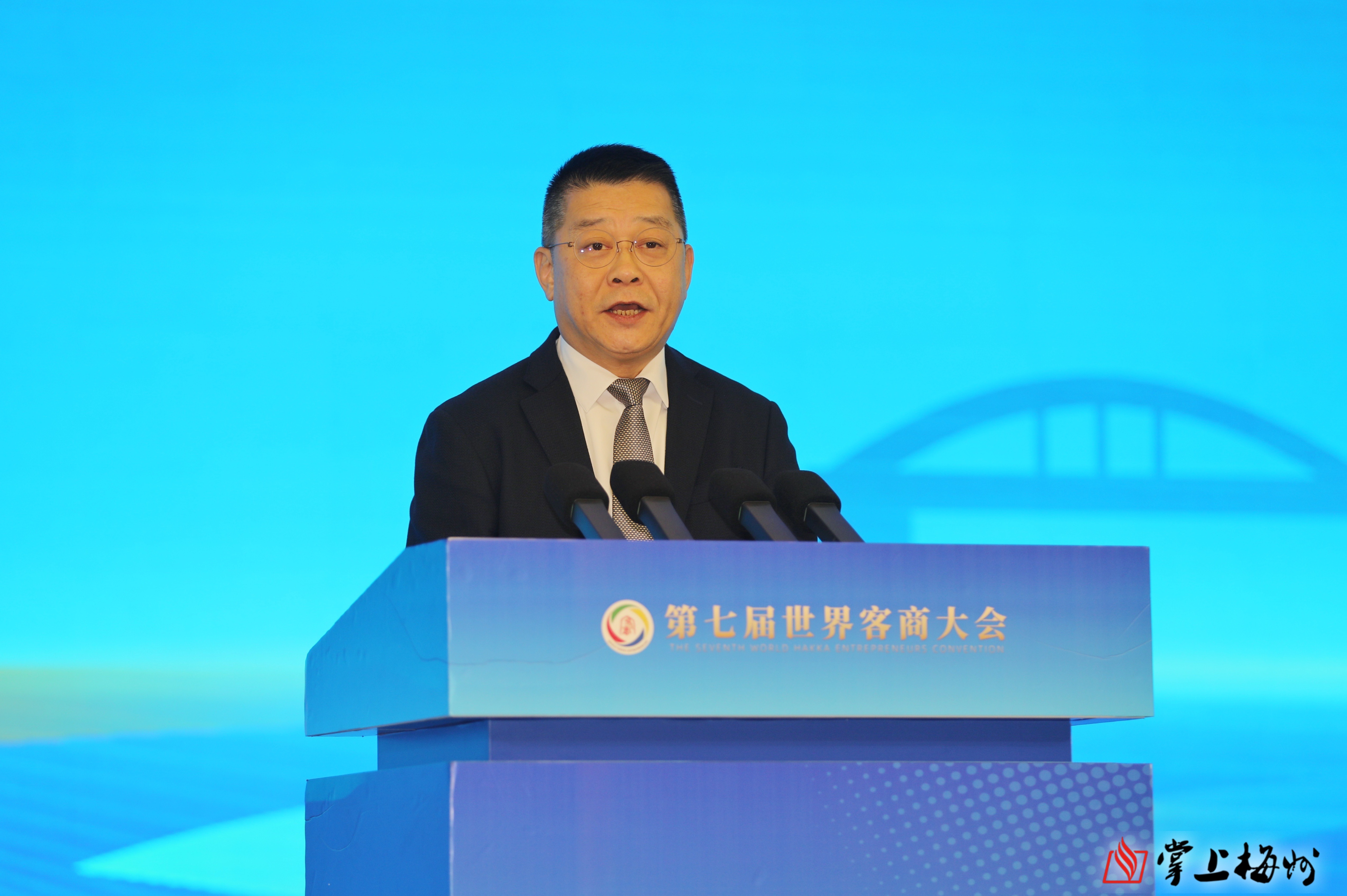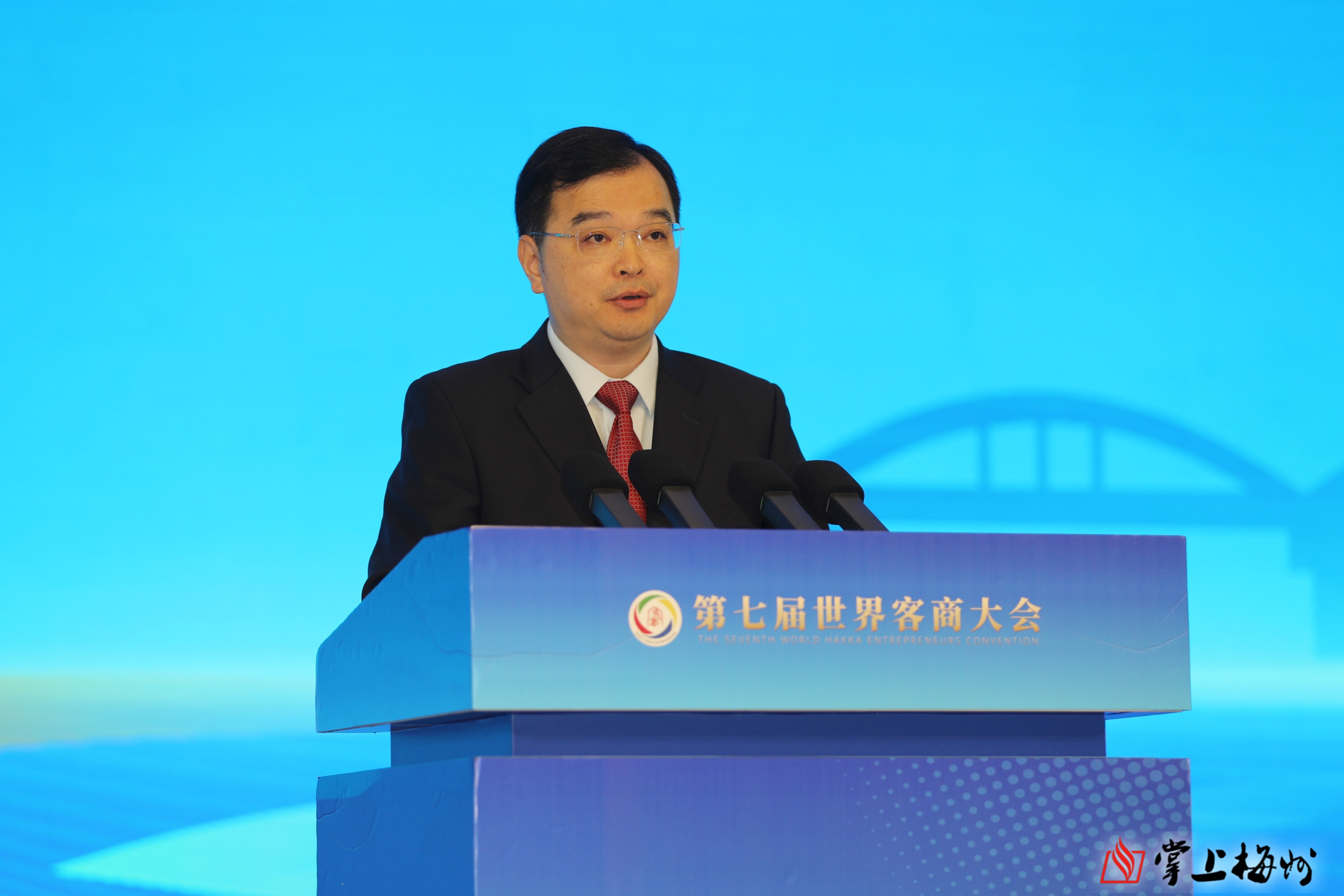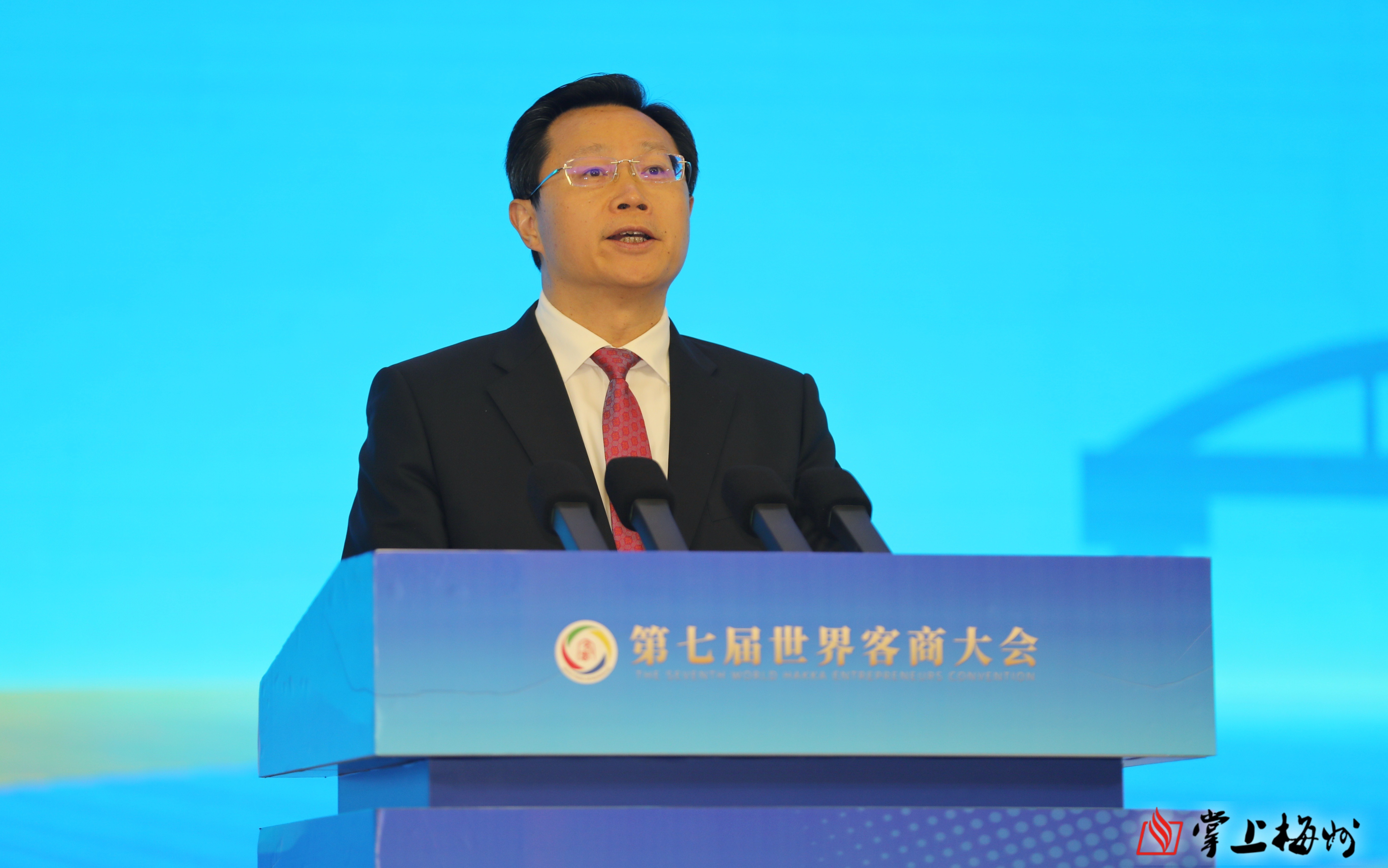 广东省政府副省长,梅州市委书记、市人大常委会主任马正勇致欢迎辞。他代表梅州市委、市政府和500多万父老乡亲,对各位领导嘉宾和广大客商朋友的到来表示热烈欢迎和衷心感谢。他表示,11月初习近平总书记视察广东时寄望梅州发展要再加快速度。这是梅州发展历程中的重要里程碑,镌刻着梅州苏区的荣光,也是世界客商的荣光。我们要始终牢记习近平总书记殷殷嘱托,把客商精神弘扬好、传承好,把梅州苏区建设好、发展好,矢志不渝造福人民、初心不改实业报国。要锚定高质量发展首要任务,坚持“发展思维”“产出思维”,全力推动“百千万工程”,加力提速建设苏区融湾先行区,推动梅州柚、嘉应茶、客都米、兴宁鸽等冲出围龙、走向世界。展望未来,梅州苏区加快振兴,高质量发展,空间广阔、大有可为。希望全球客商选择梅州、融入梅州,将更多的好项目、好技术、好资源带回梅州,把广东、把梅州更多的好故事、好声音、好产品传出去。梅州市委、市政府将始终为广大客商提供最好的政务服务、最优的营商环境,真正让每一位客商投资有回报、发展有前景、生活有奔头!