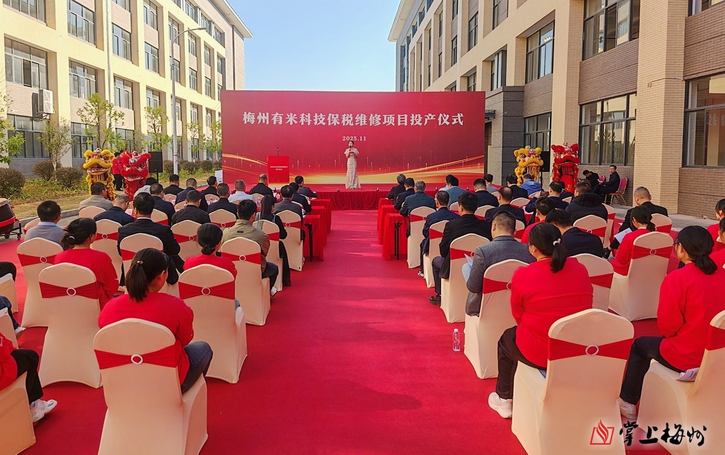 掌上梅州讯 11月25日,梅州有米科技保税维修项目投产仪式在梅州综保区举行。市委常委、副市长蒋鲲,梅县区委副书记、区长、梅州综保区管委会主任王锋,梅州海关关长陈静,小米集团国际交付与服务部总经理徐亚军,有信达集团董事长陈小斌,有米科技总经理徐冲等领导嘉宾,以及梅州市和梅县区相关单位负责人、畲江商会代表等约60人出席活动。