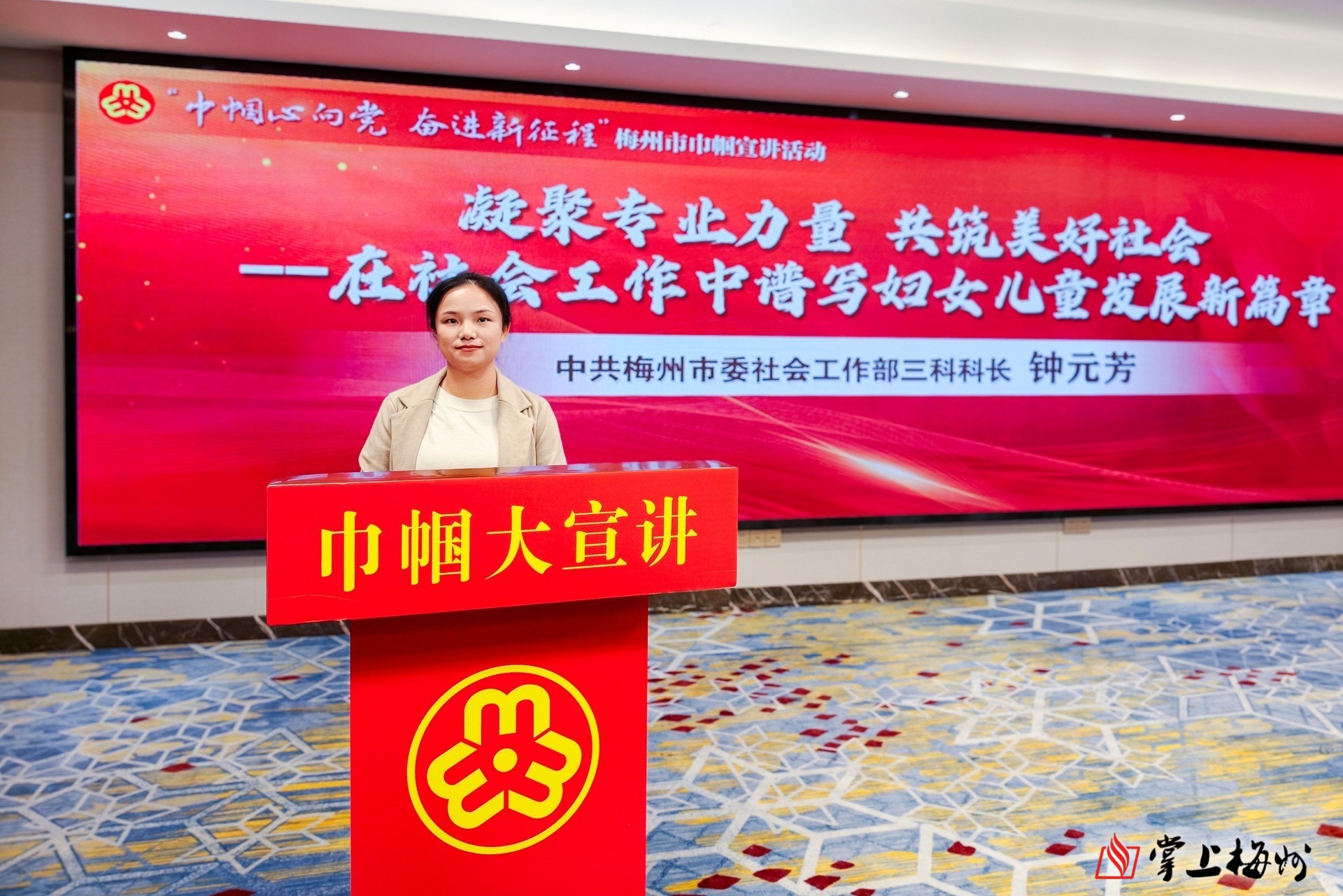 掌上梅州讯 11月28日,“巾帼心向党 奋进新征程”梅州市巾帼宣讲活动在梅城举行。市妇联八届执委,市直和中央、省属驻梅有关单位妇委会代表,市妇联主管社会组织、团体会员代表,“三新”领域妇联组织代表等百余人参加活动。