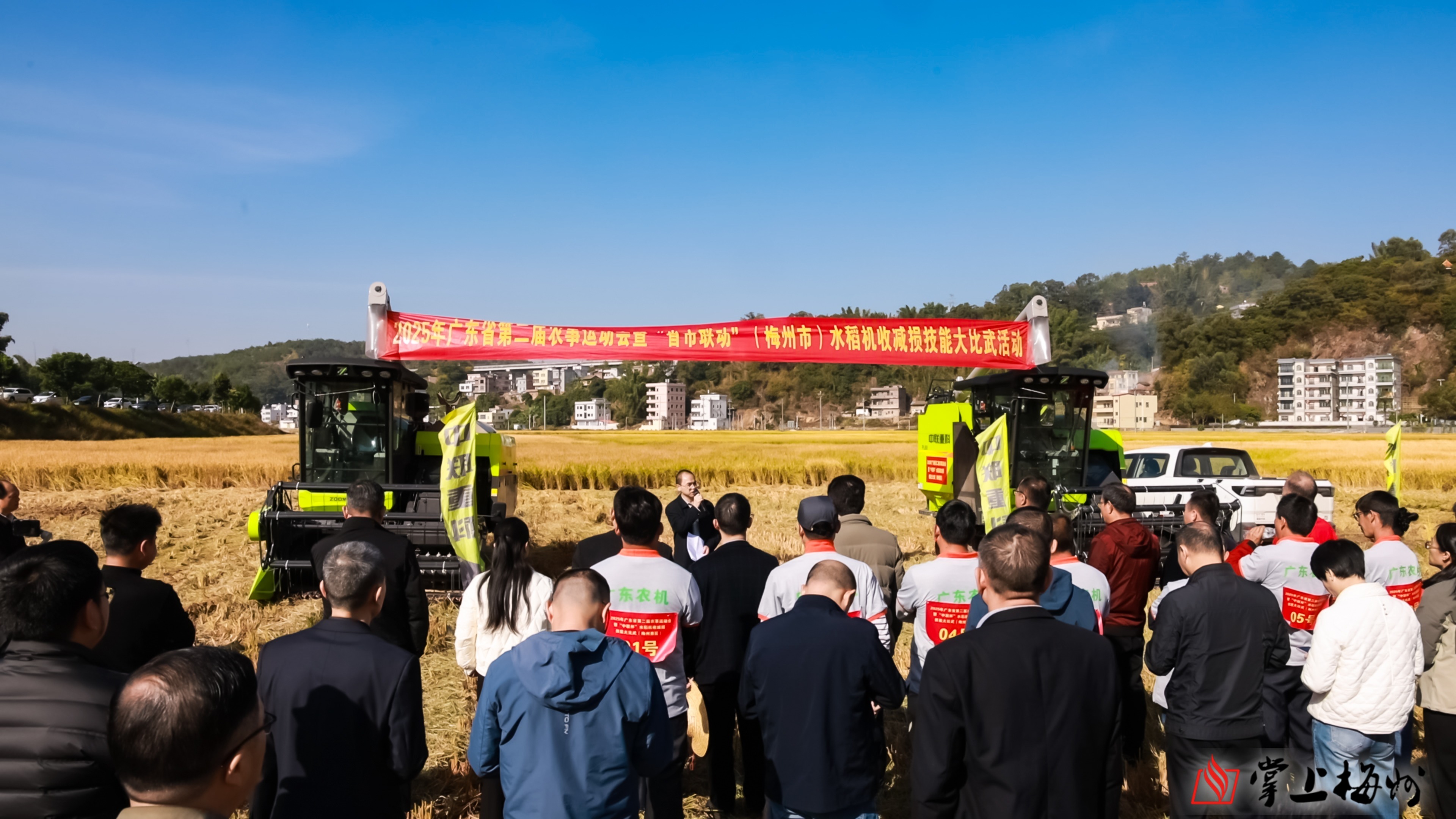 掌上梅州讯 11月26日,2025年广东省第二届农事运动会暨“省市联动”(梅州市)水稻机收减损技能大比武活动在梅州市五华县安流镇低坑村的梅州市稻宏农业服务有限公司水稻种植基地举行。来自全市8个县(市、区)的农机手精英同台竞技,在金色的稻田里展开了一场以“减损”为核心的高水平技能比拼。