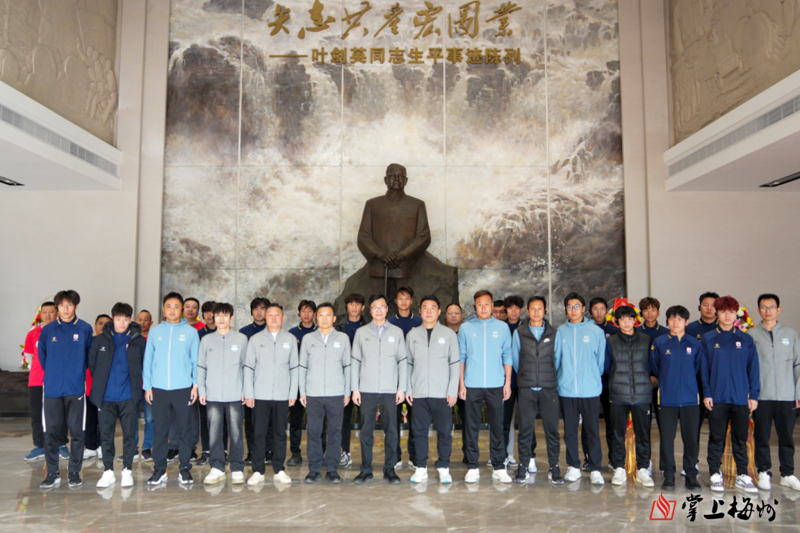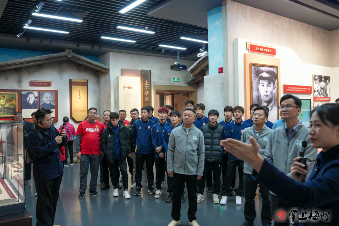掌上梅州讯 11月28日,梅州强民足球俱乐部以“赓续红色血脉 传承强民精神”为主题,组织全体教练员、运动员、工作人员,在市体育局领导的带领下,联合市足运中心、市足协开展主题教育活动。一行人先后前往叶剑英纪念园、曾宪梓事迹展览馆接受红色教育与精神洗礼,随后奔赴客场备战赛事。
