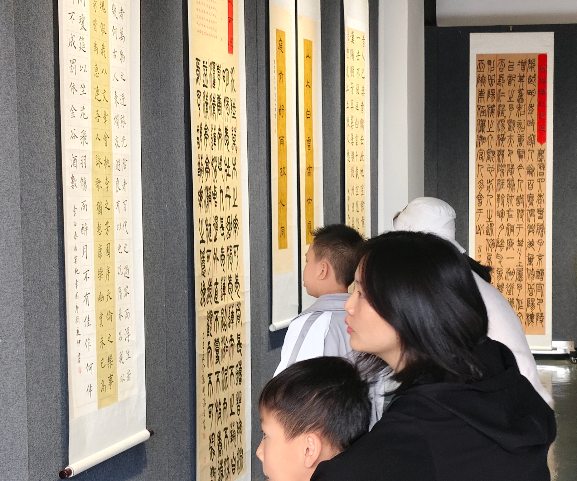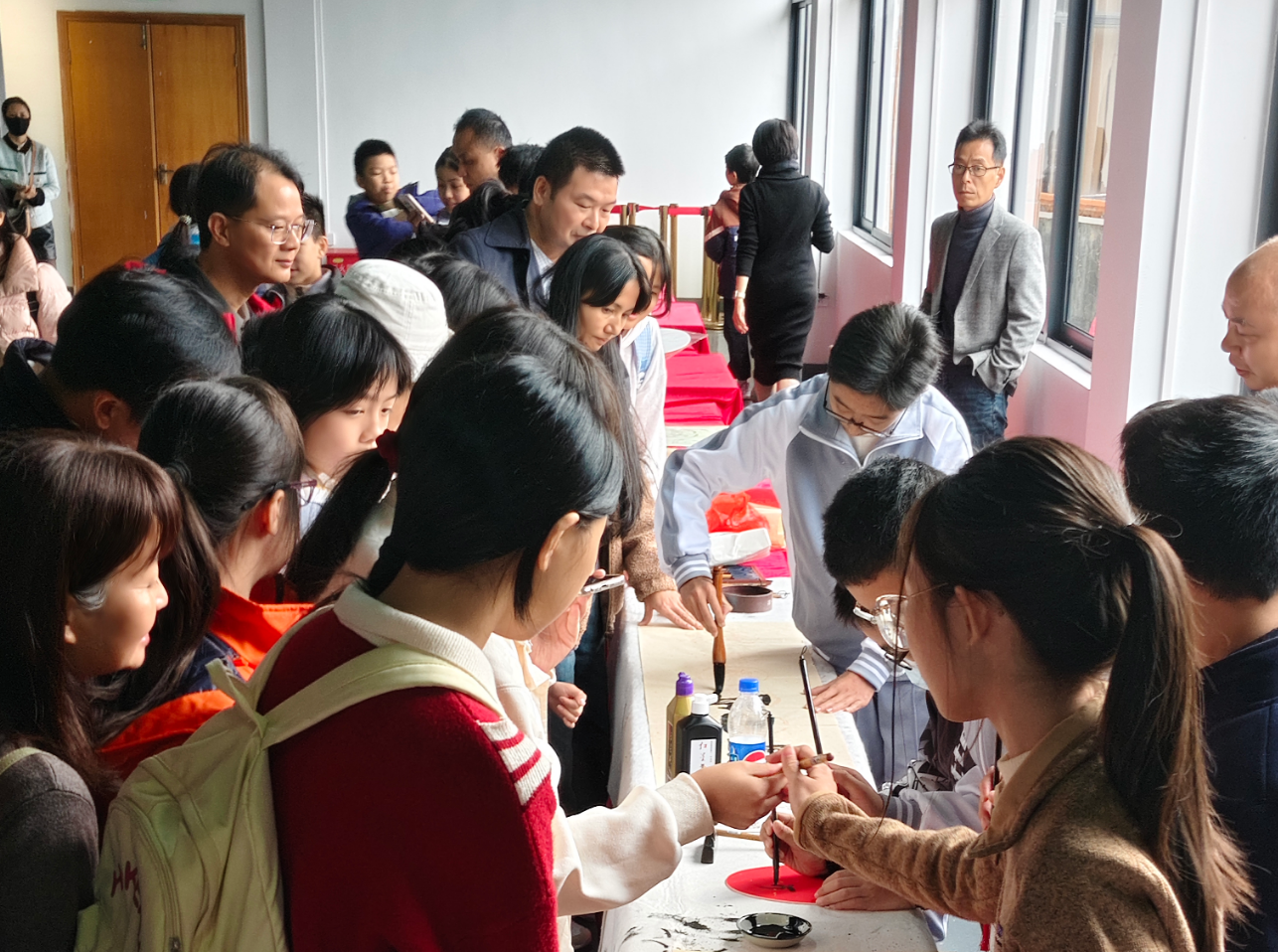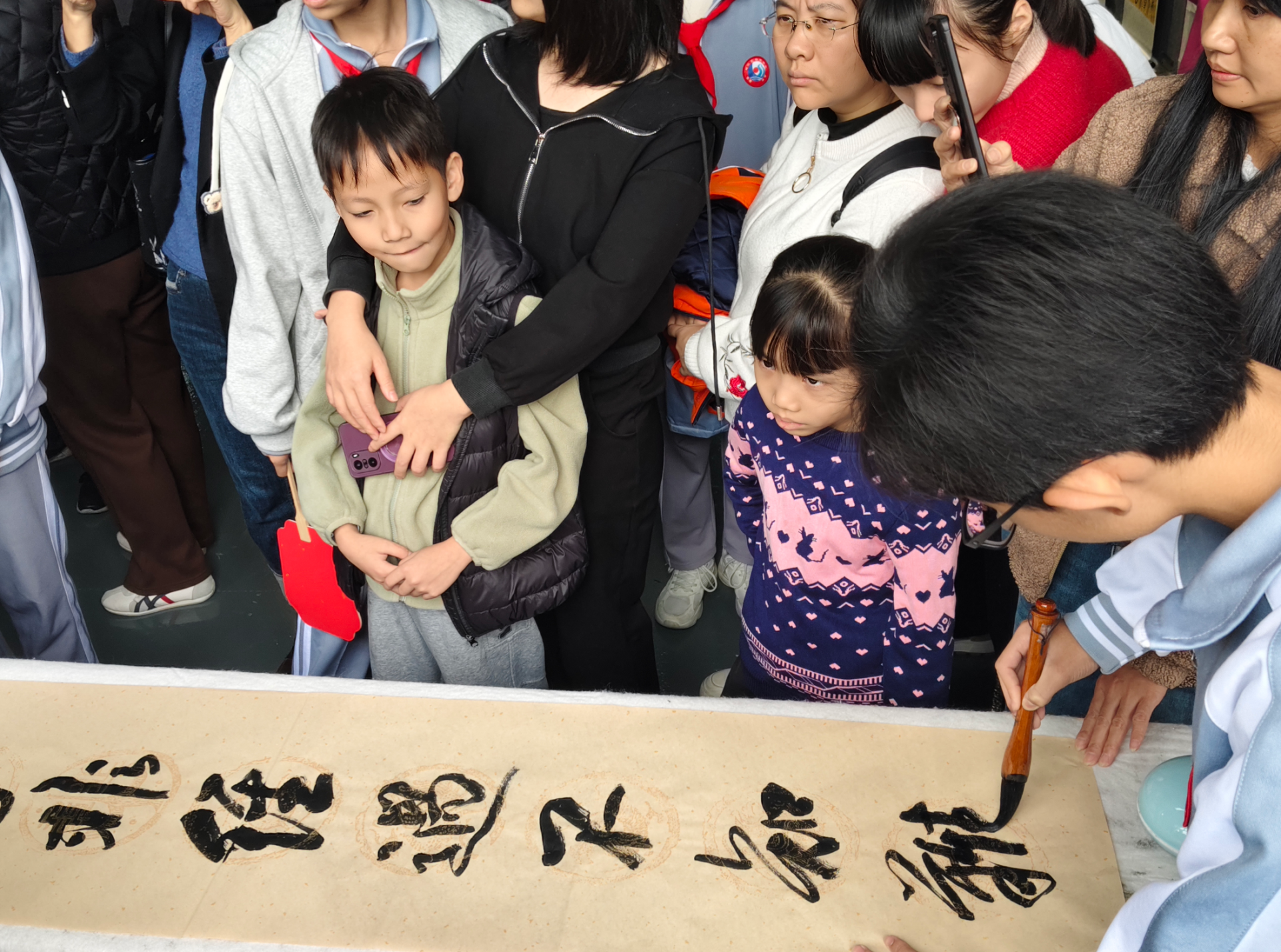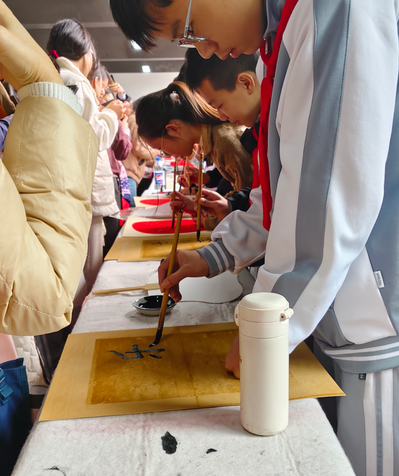 活动现场还安排学生泼墨挥毫环节,孩子们以笔为媒、以墨抒情,现场展现书法创作风采,尽显对传统书画艺术的热爱。