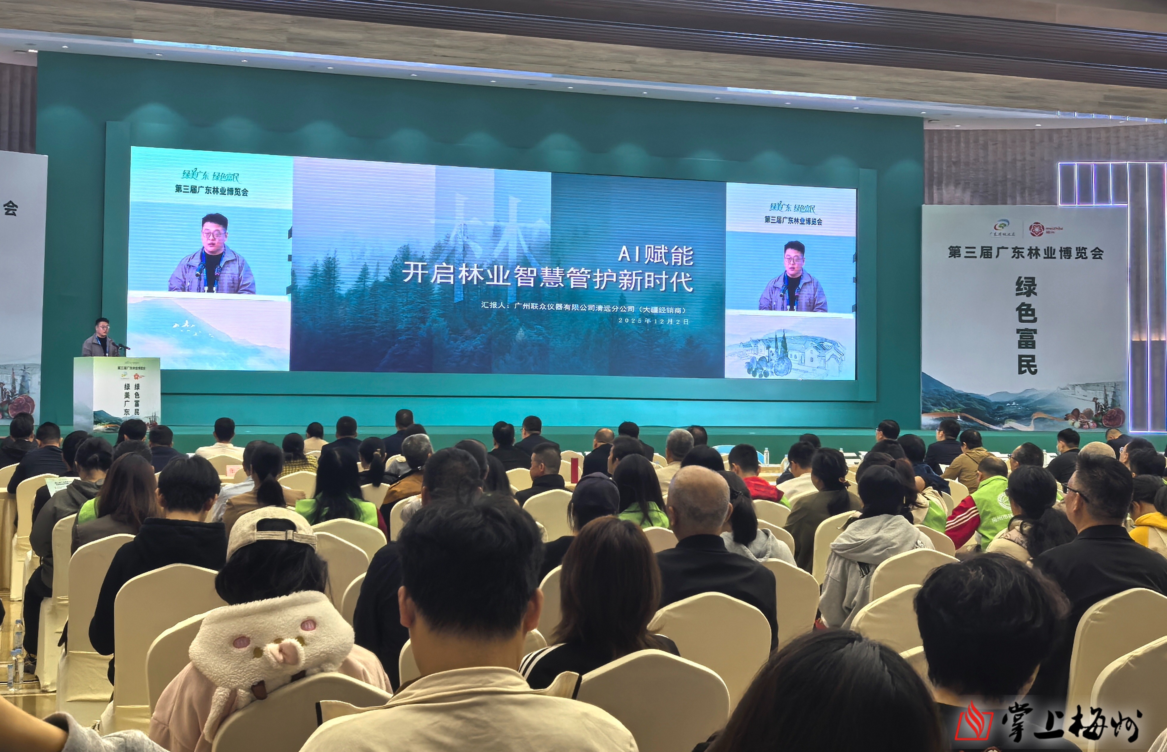 在新质生产力赋能林业高质量发展推介环节,广州联众仪器有限公司清远分公司代表、广州成至智能机器科技有限公司代表先后作《AI赋能,开启林业智慧管护新时代》《林业无人机应用解决方案》主题报告,展现了AI技术与林业种养、管、护、用全链条深度融合的实践和探索,描绘了“智慧林业”的发展蓝图。