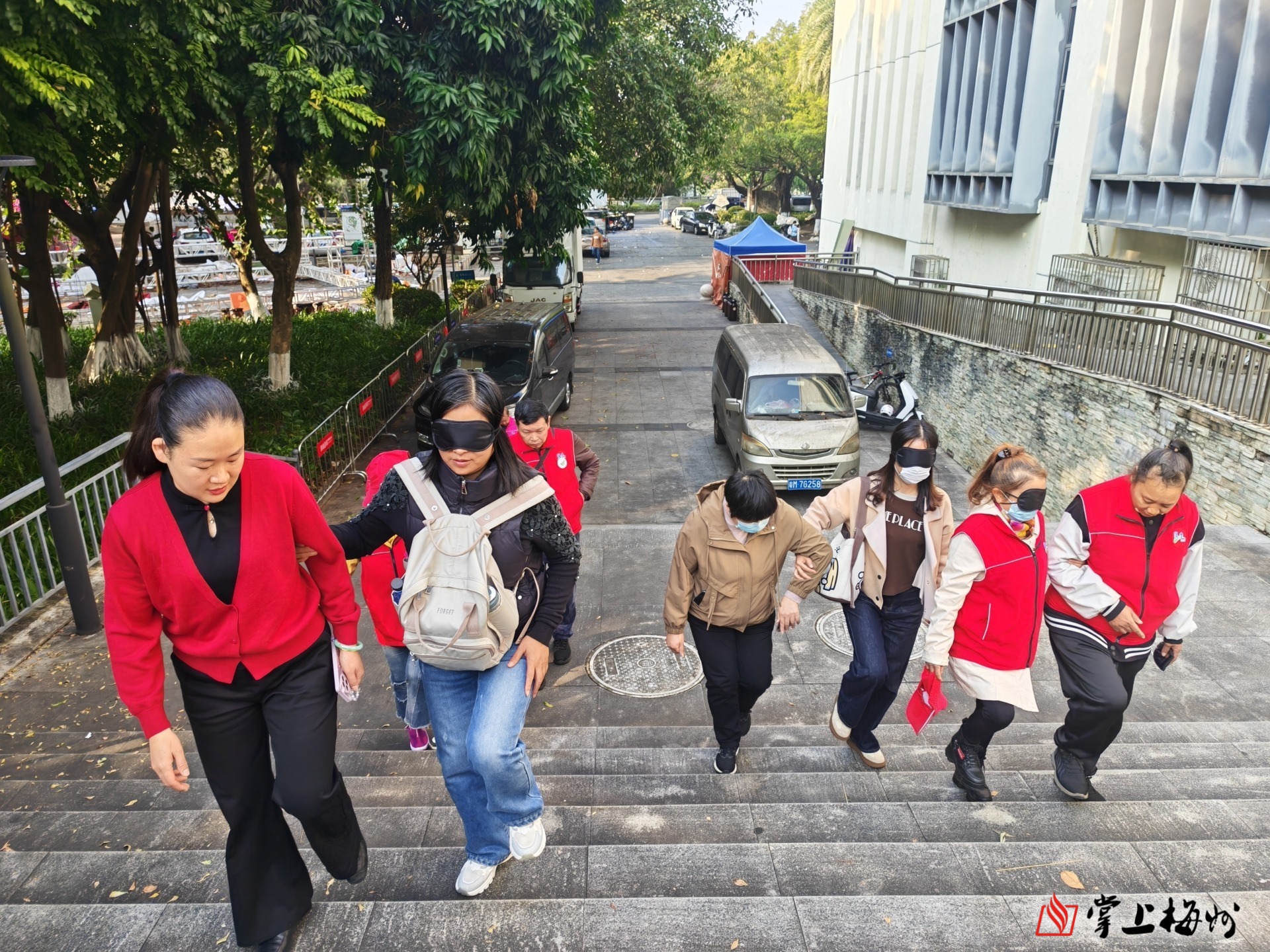据了解,该活动由市剑英图书馆、萤烛之光志愿服务队——广东省盲人协会志愿服务总队梅州分队主办,梅州市广电民生志愿者协会协办,采用“双向赋能”培训模式,对接视障人士出行需求和志愿者服务能力提升需求,有针对性地设置课程。盲童家长何燕清老师以“理论+实操”相结合的方式,通过生动讲解、模拟练习、室外引导行走实操等多元方式,组织志愿者分组开展蒙眼体验与同伴指引训练,系统传授助盲技巧,让志愿者在沉浸式体验中读懂视障群体的出行困境,掌握科学、专业的服务方法,更好地为视障群体出行护航。