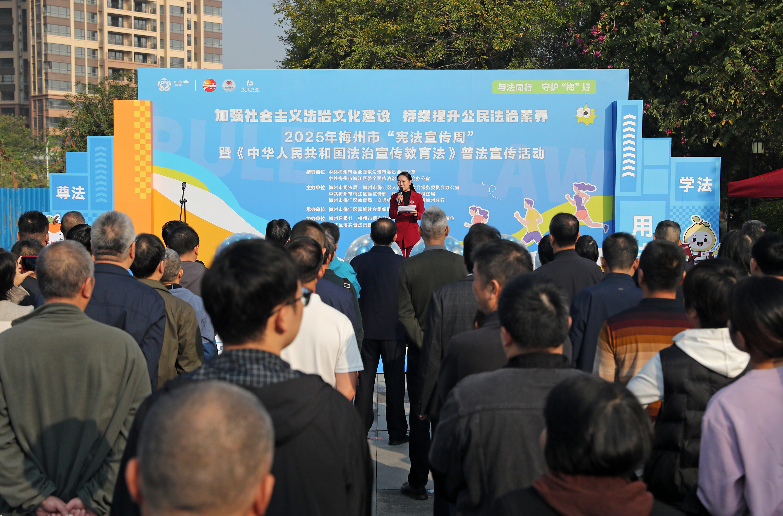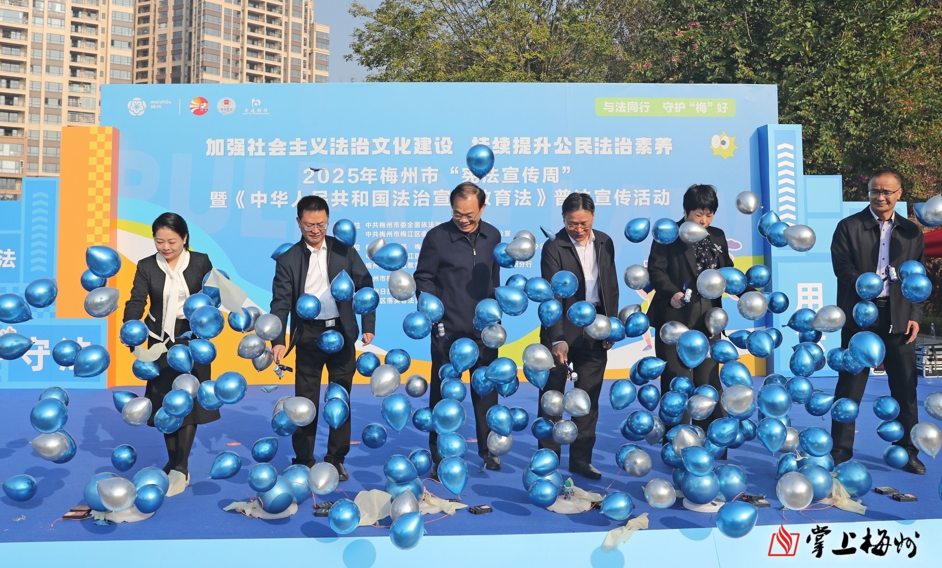 掌上梅州讯 气球飘扬,彩烟升腾。12月6日,2025年梅州市“宪法宣传周”暨《中华人民共和国法治宣传教育法》普法宣传活动在梅江区马鞍山宪法主题公园举行。市人大常委会副主任刘锐清出席活动并宣布启动。市政府副秘书长、市信访局局长梁亮新,市司法局党组书记张德汪、市司法局局长徐婉玲、交通银行股份有限公司梅州分行行长左李琳、梅江区人大常委会副主任叶怀忠等参加活动。