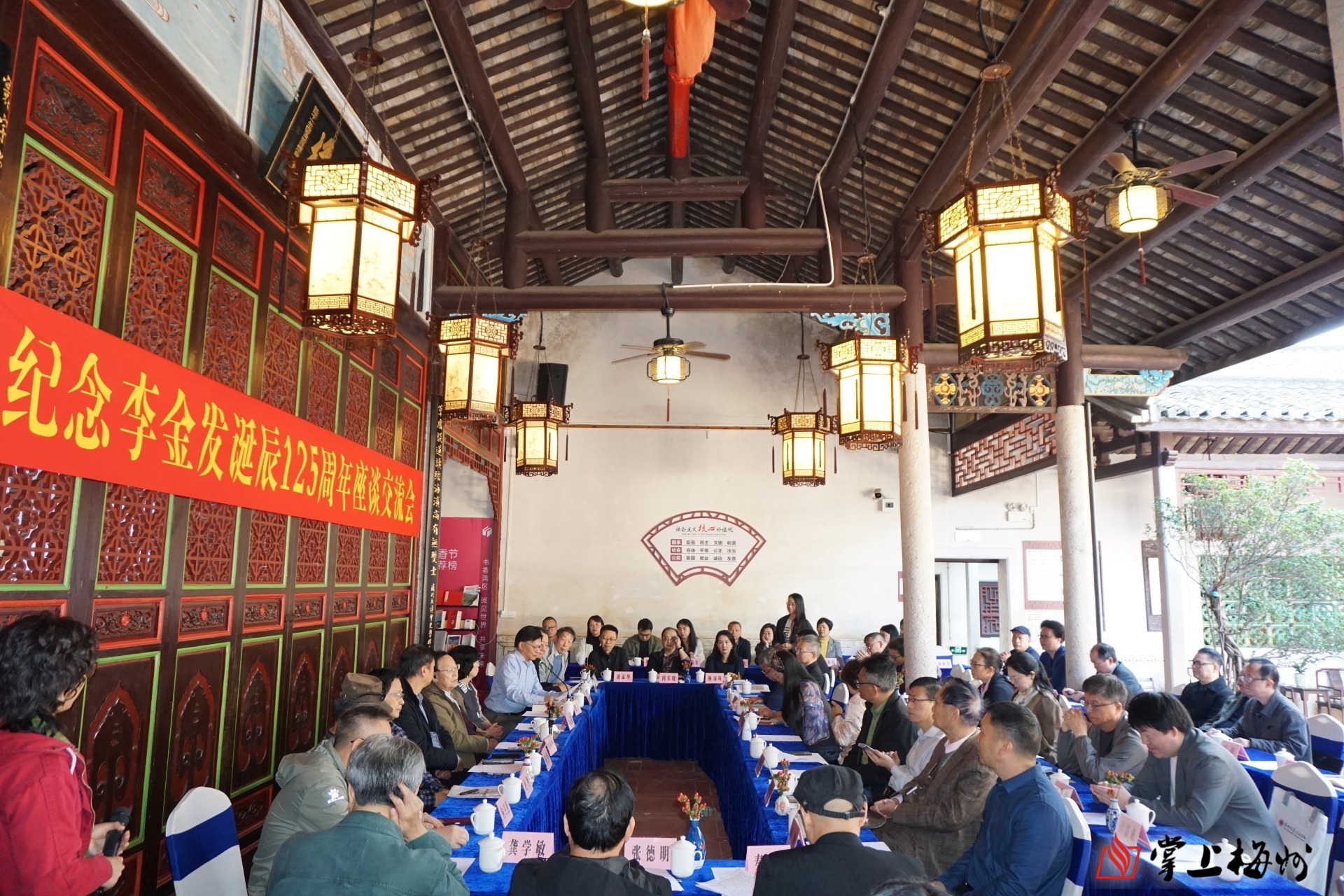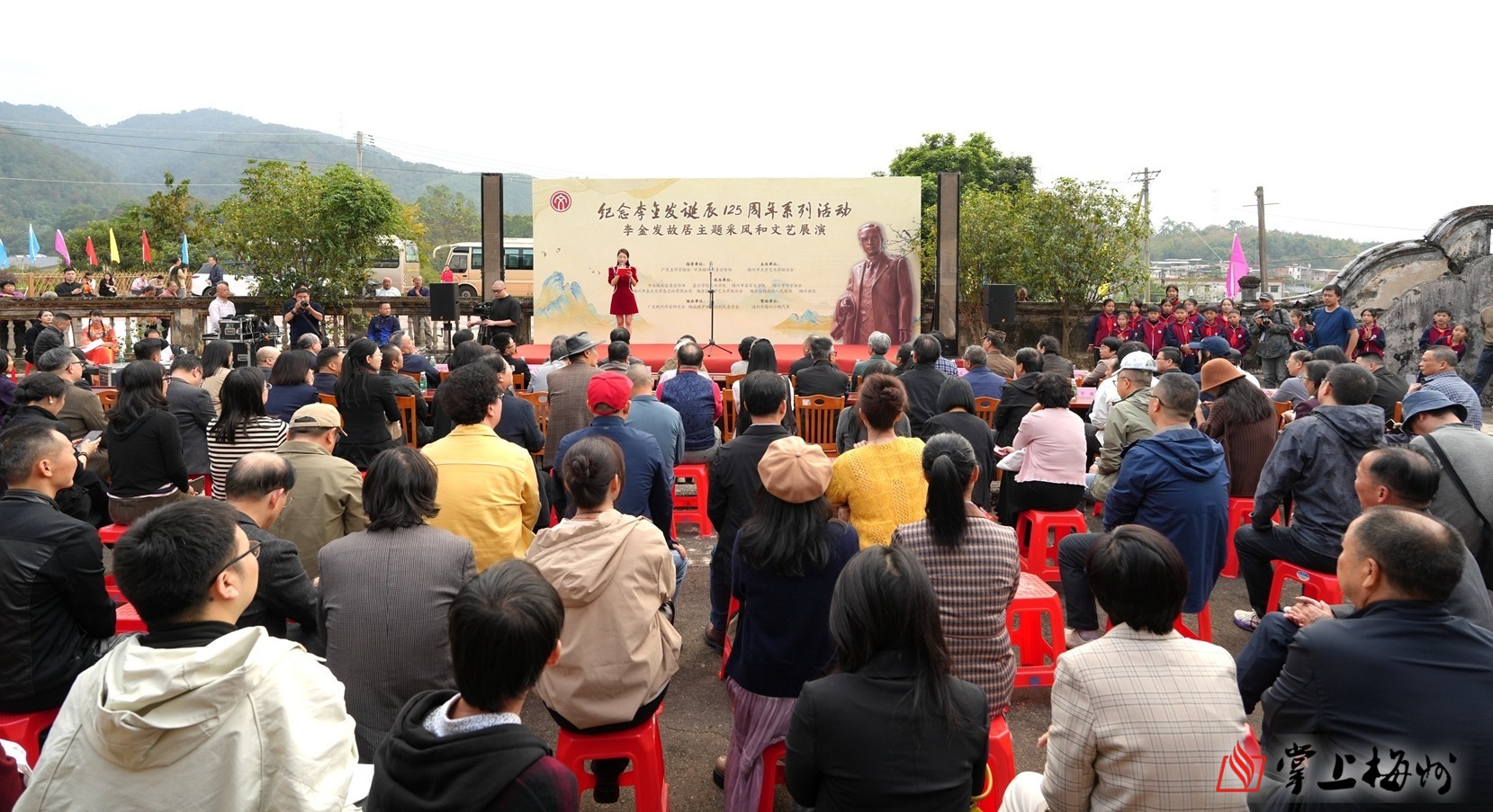 12月7日下午,百余位嘉宾齐聚梅县区梅南镇,参观李金发故居和以“文学纵横 金石刻画”为主题的展览,并观看了文艺展演。专家学者、作家和诗人代表们踏寻先贤足迹,通过参观故居及周边人文景观,感受孕育“诗怪”的山水风土与客家文化基因;通过参观李金发主题展览,全面了解李金发的艺术人生。在文艺演出中,梅南镇中心小学学生朗诵的《亡国是可怕的》、梅县区山歌传承保护中心演出的五句板《客家才子李金发》以及山歌表演唱《岭东恋歌》,以童声、乡音和传统曲艺,生动再现了李金发的爱国情怀、生平故事与情感世界,实现了学术研究与乡土情感的深切共鸣。