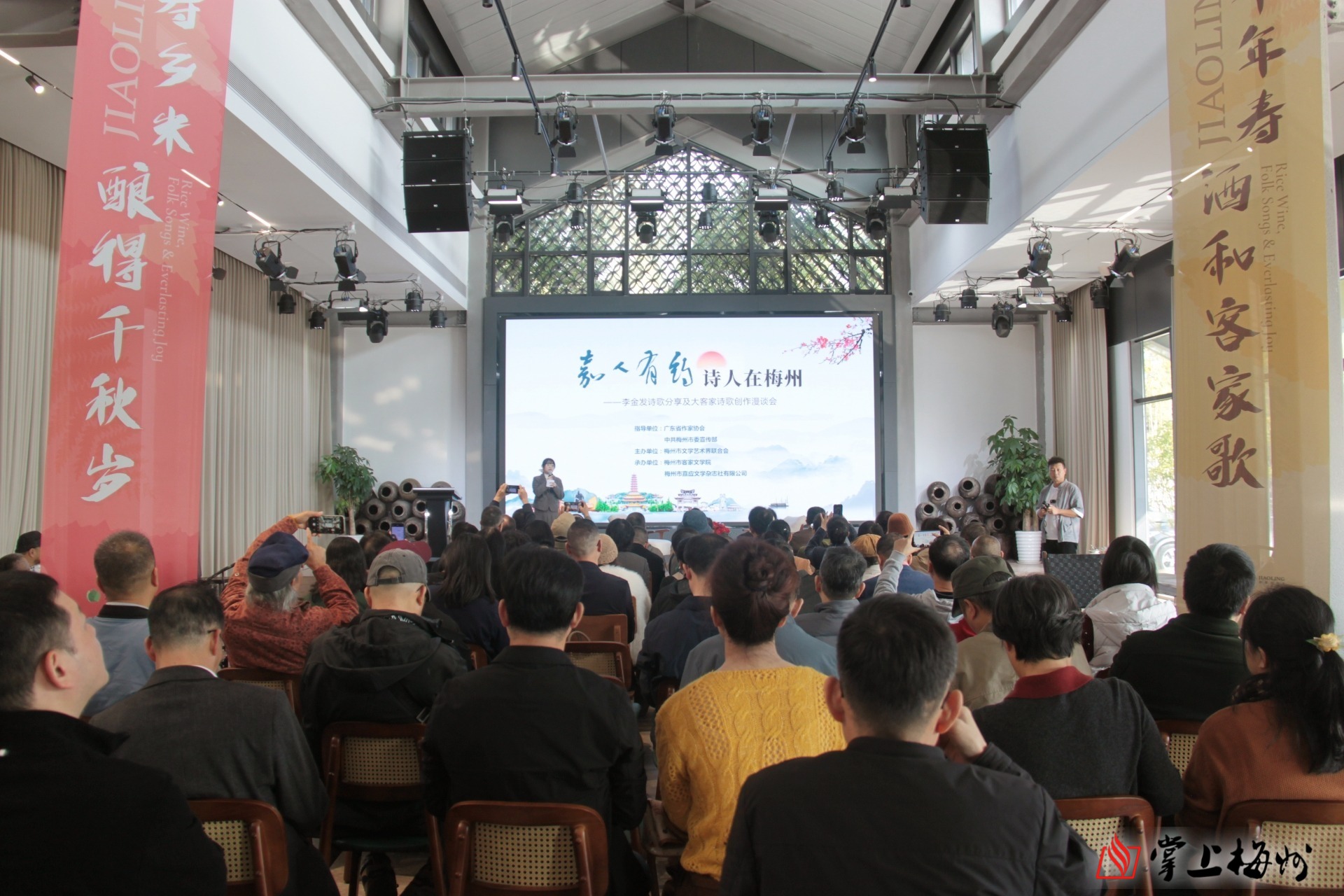 7日晚,“风土·客韵”专场文艺晚会在梅州市客家山歌传承保护中心剧场上演。晚会首发了梅州市文联专门制作的《李金发》视频,用AI技术和影像再现了李金发的传奇一生,令人动容。还有一大亮点,是根据李金发诗歌《故乡》谱曲创作的同名歌曲首次公开演唱,悠扬的旋律将百年前游子的纸上乡愁,化为可听可感的现代音符,完成了跨越世纪的深情对话。非遗小剧场通过沉浸式舞台,综合展现了客家山歌、广东汉剧、提线木偶等艺术元素,让文学纪念活动升华为一场彰显地域文化魅力的综合性艺术盛宴。