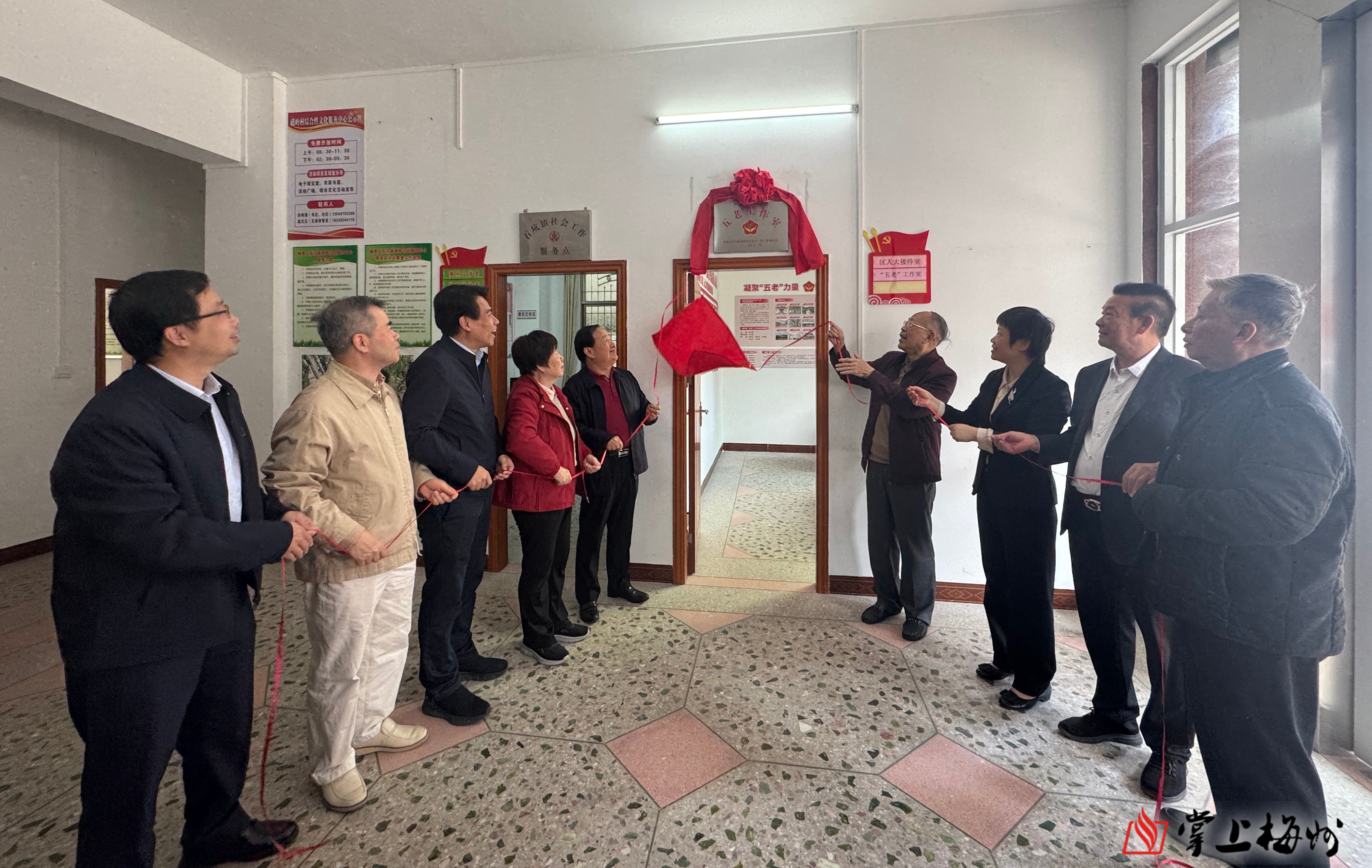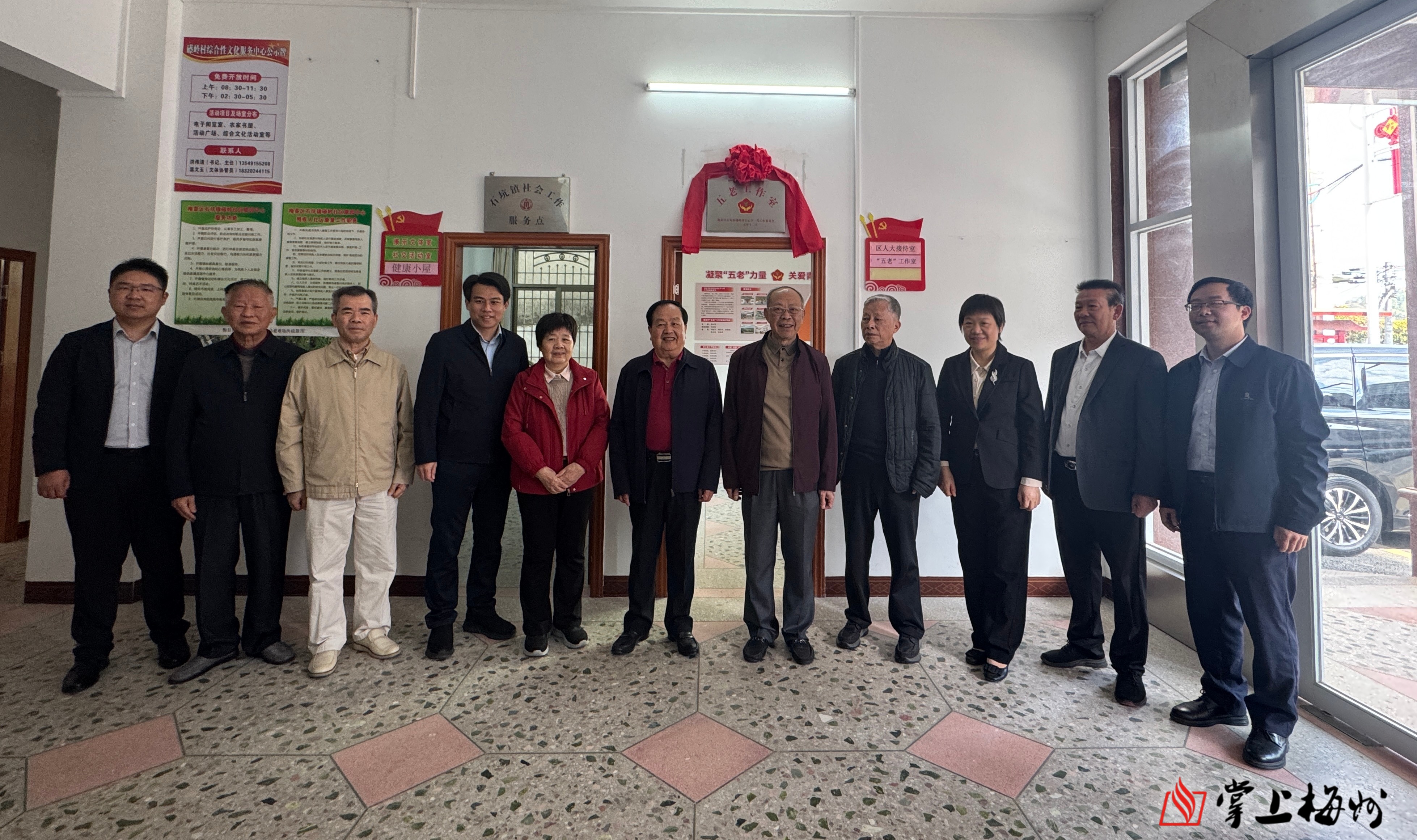 赠书仪式结束后,大家前往石坑镇礤岭村举行“五老”工作室揭牌仪式,旨在为青少年提供学业辅导、艺术培训、红色文化教育等多元化服务。并前往参观了石坑镇澄中村东皋公祠苏维埃旧址及石坑镇美丽客厅(石坑印象)。