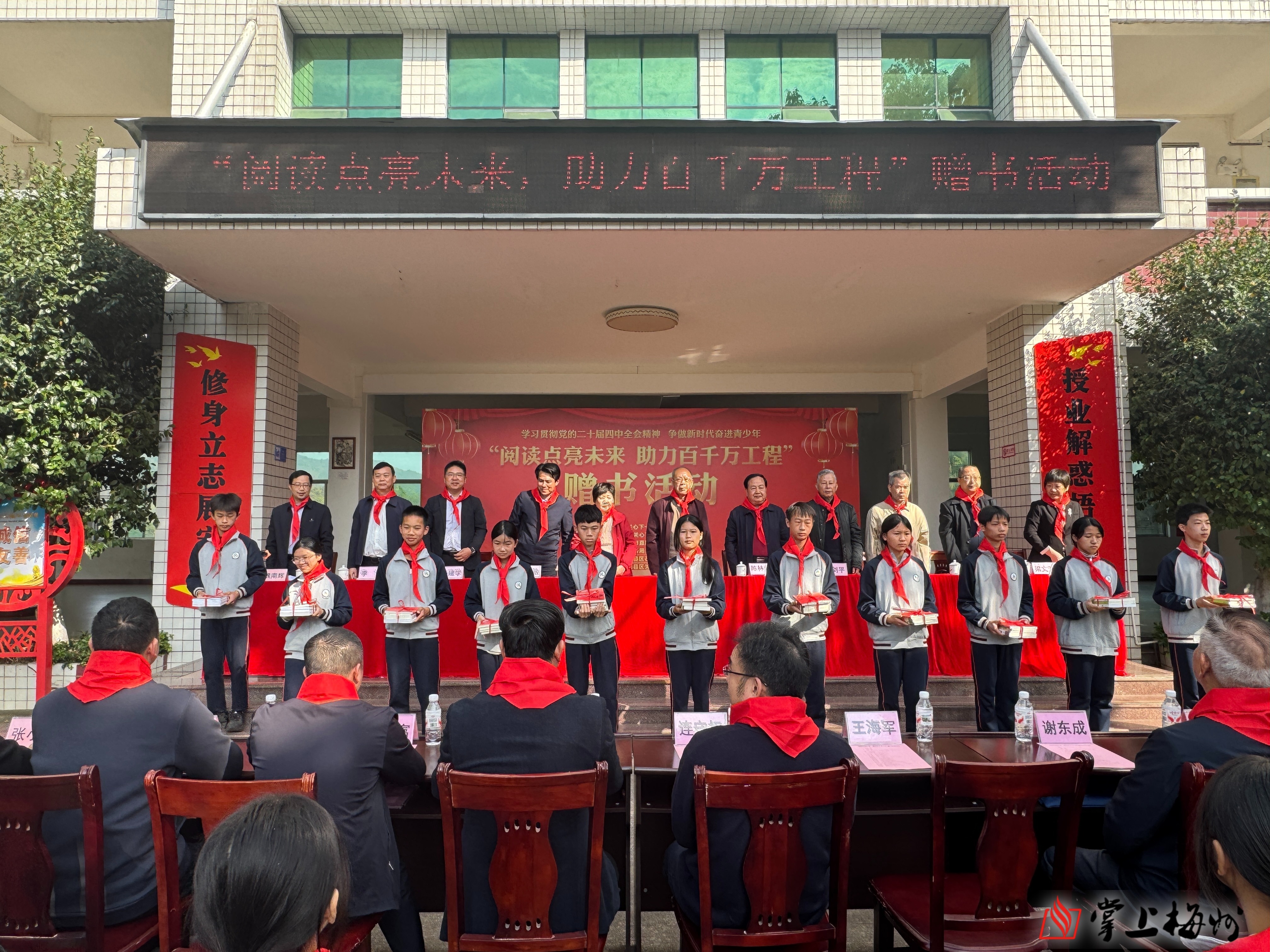 掌上梅州讯 12月10日,市关工委、市商务局联合举办的“阅读点亮未来,助力百千万工程”赠书活动在石坑中学举行。市关工委主任何正拔,常务副主任陈林荣,副主任张剑平、谢雪琼、王球堂,市商务局党组书记、局长李敏,市直机关工委副书记杨建学,梅县区委组织部副部长、老干部局局长梁文芳等相关单位负责同志参加活动。