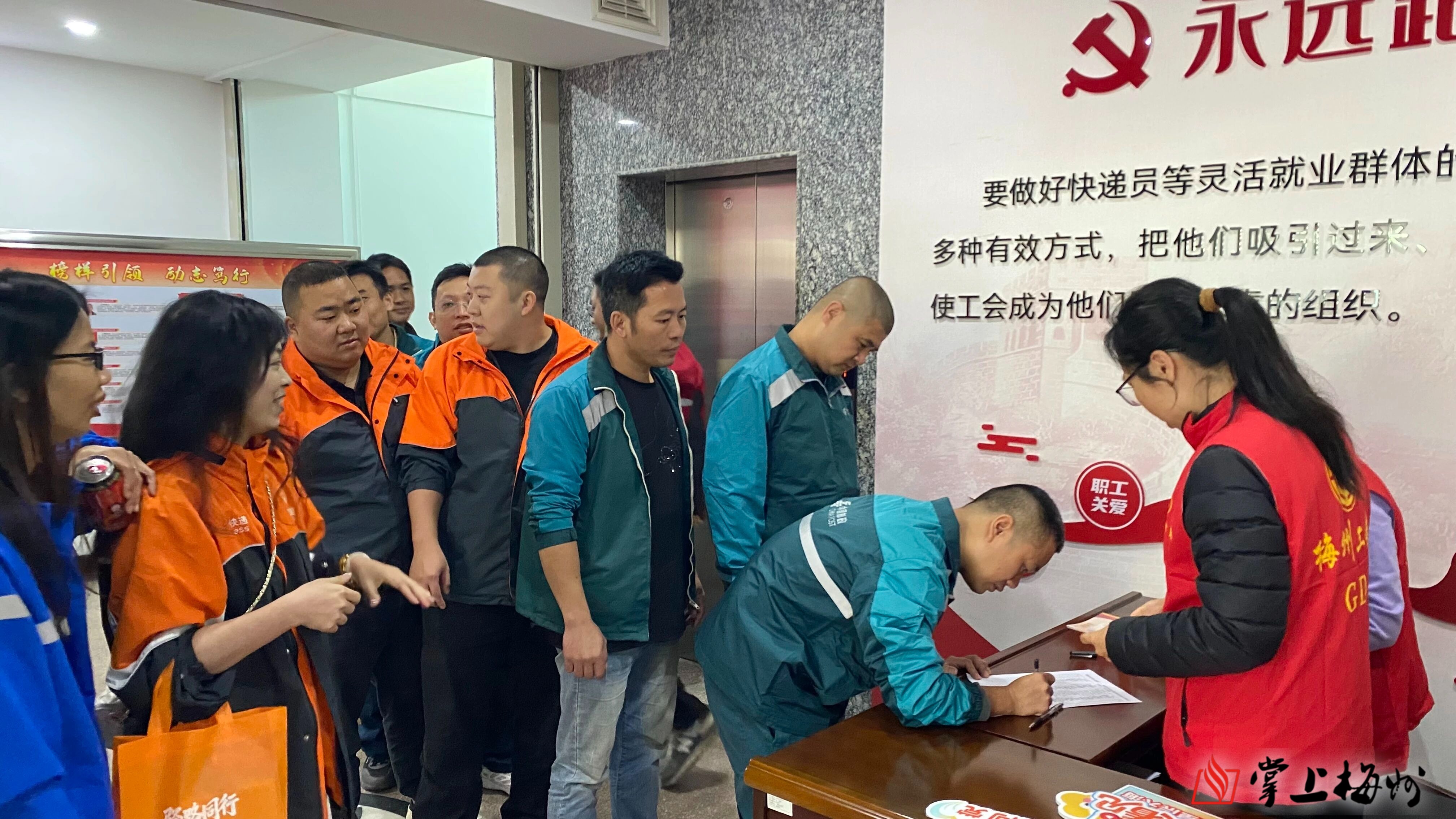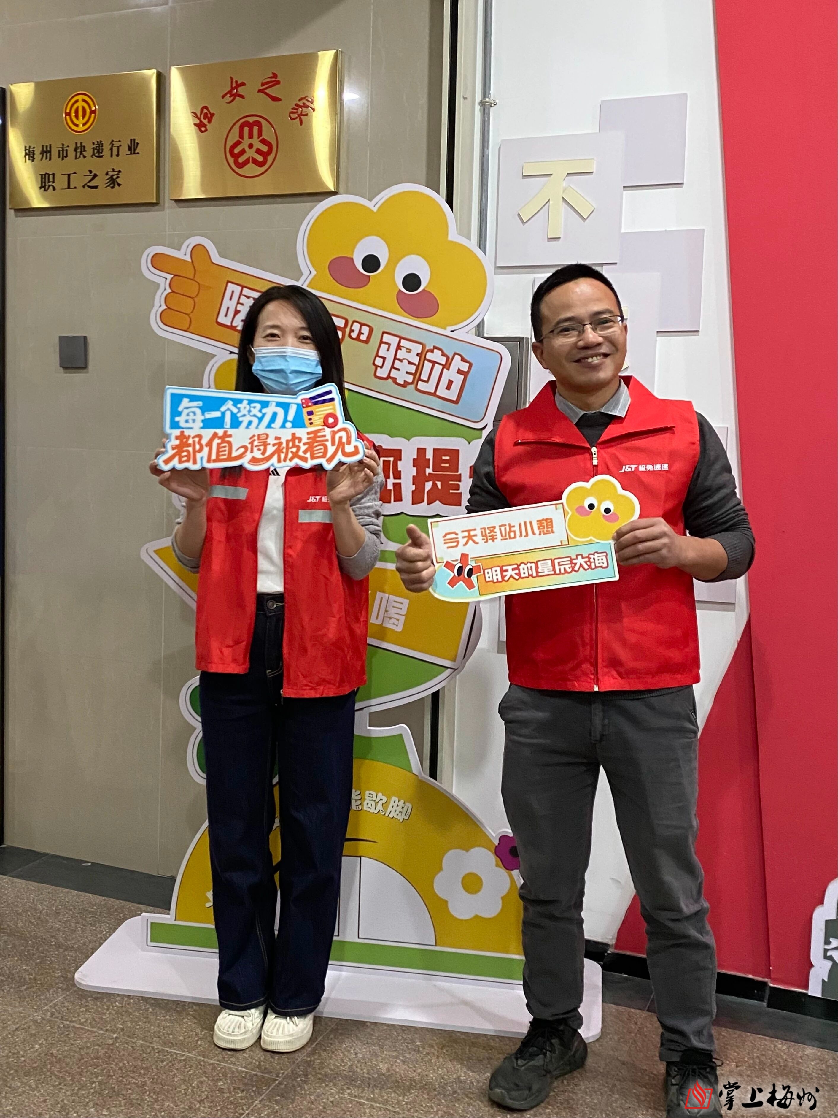 随后,由梅州市总工会、市交通运输局、市邮政管理局三家主办单位与新业态代表同画“暖心驿路”,关爱新就业形态劳动者活动正式启动。