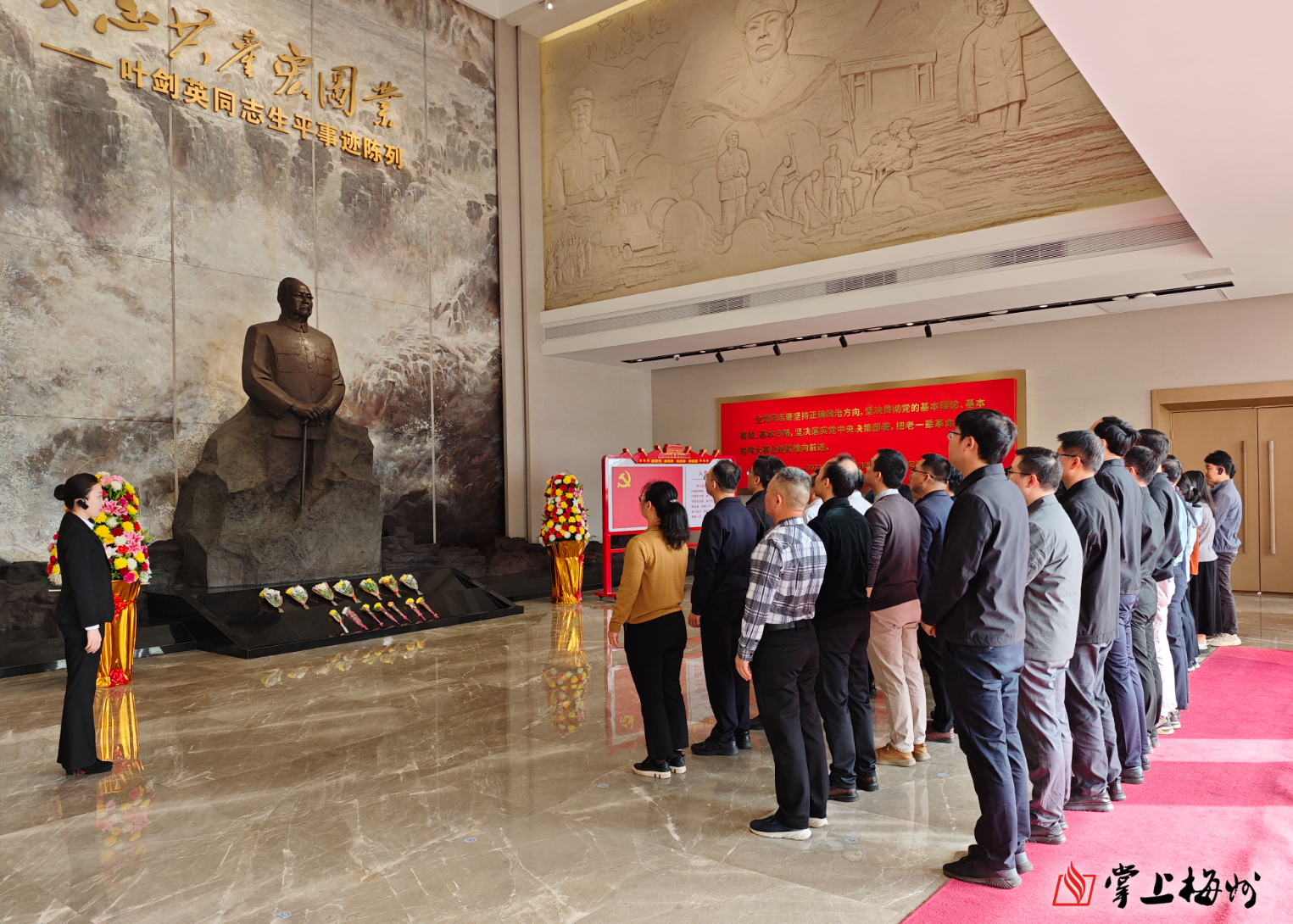 在叶剑英纪念园,全体党员干部在叶帅铜像前肃立鞠躬,深切缅怀这位伟大的无产阶级革命家、政治家、军事家的不朽功勋,深刻感悟老一辈革命家对党忠诚、矢志不渝的政治品格和心系人民、无私奉献的崇高情怀。随后,大家怀着崇敬之情参观纪念馆各展区,通过珍贵文物、历史照片和文献资料,系统回顾了叶剑英元帅从早年投身革命到参与新中国建设、推动改革开放的光辉历程,进一步领会其坚定的理想信念和卓越的军事政治才能。