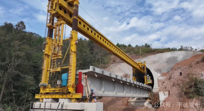 12月12日,随着田子里1号中桥首孔T梁大桃里2号隧道出口位置顺利架设,标志着瑞梅铁路(广东段)首次向梅州方向架梁任务圆满完成。