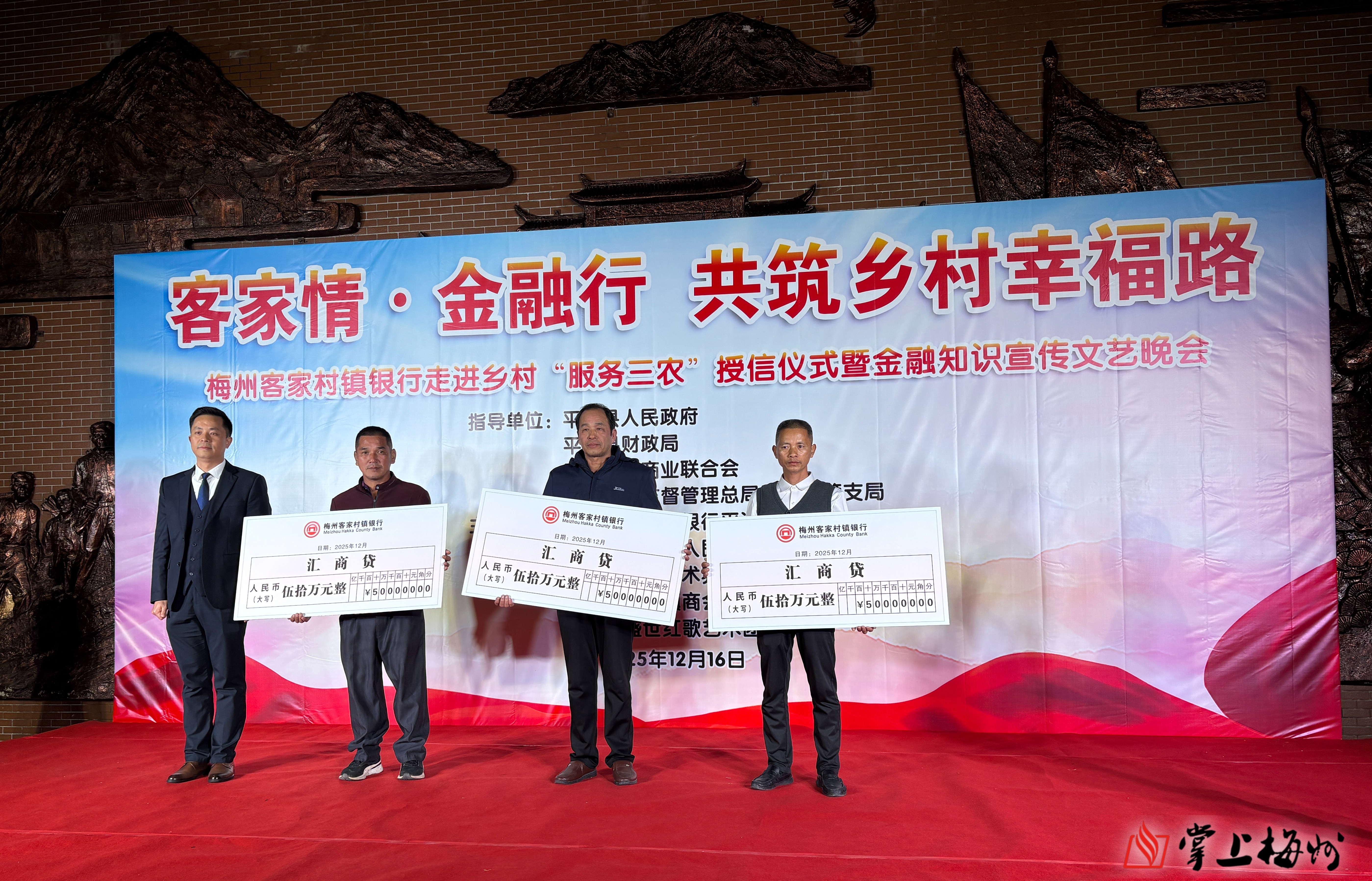 12月16日晚,梅州客家村镇银行走进乡村“服务三农”授信仪式暨金融知识宣传文艺晚会在平远县仁居镇红色文旅服务中心举行,活动以“客家情·金融行,共筑乡村幸福路”为主题,通过授信仪式、产品宣讲和文艺表演等形式,将金融服务和金融知识送到企业手中和村民身边。
