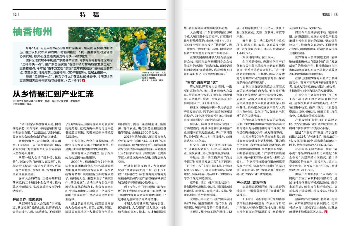 《南方》杂志2025年第24期发布“柚香梅州”特稿,分别以《从乡情聚汇到产业汇流》《坚持从“过日子思维”转向“发展思维”》《从一颗金柚,“剥”开梅州的特色产业》为题,对推动梅州苏区加快振兴、共同富裕的做法与成效进行了深度报道。一起来看看→