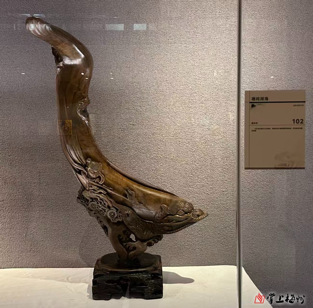 据了解,木雕《哪吒闹海》以整块金丝楠木树根为材,蒋向华依势随形雕出哪吒挺枪闹海、鳌鱼翻浪的经典场景,刀法刚柔并济,楠木幽香与少年英雄气魄相融,兼具自然灵秀与匠心巧思,赢得评委一致好评。此外,梅州市文联、市民协因组织有力、选送作品质量高,同获“优秀组织奖”。